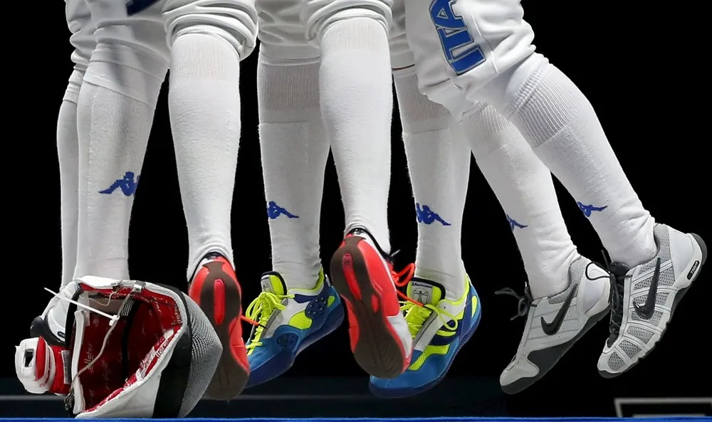 Italy's team members celebrate their victory over team Russia in their women's team foil final at the World Fencing Championships in Moscow, Russia, July 19, 2015. (Photo by Grigory Dukor/Reuters)