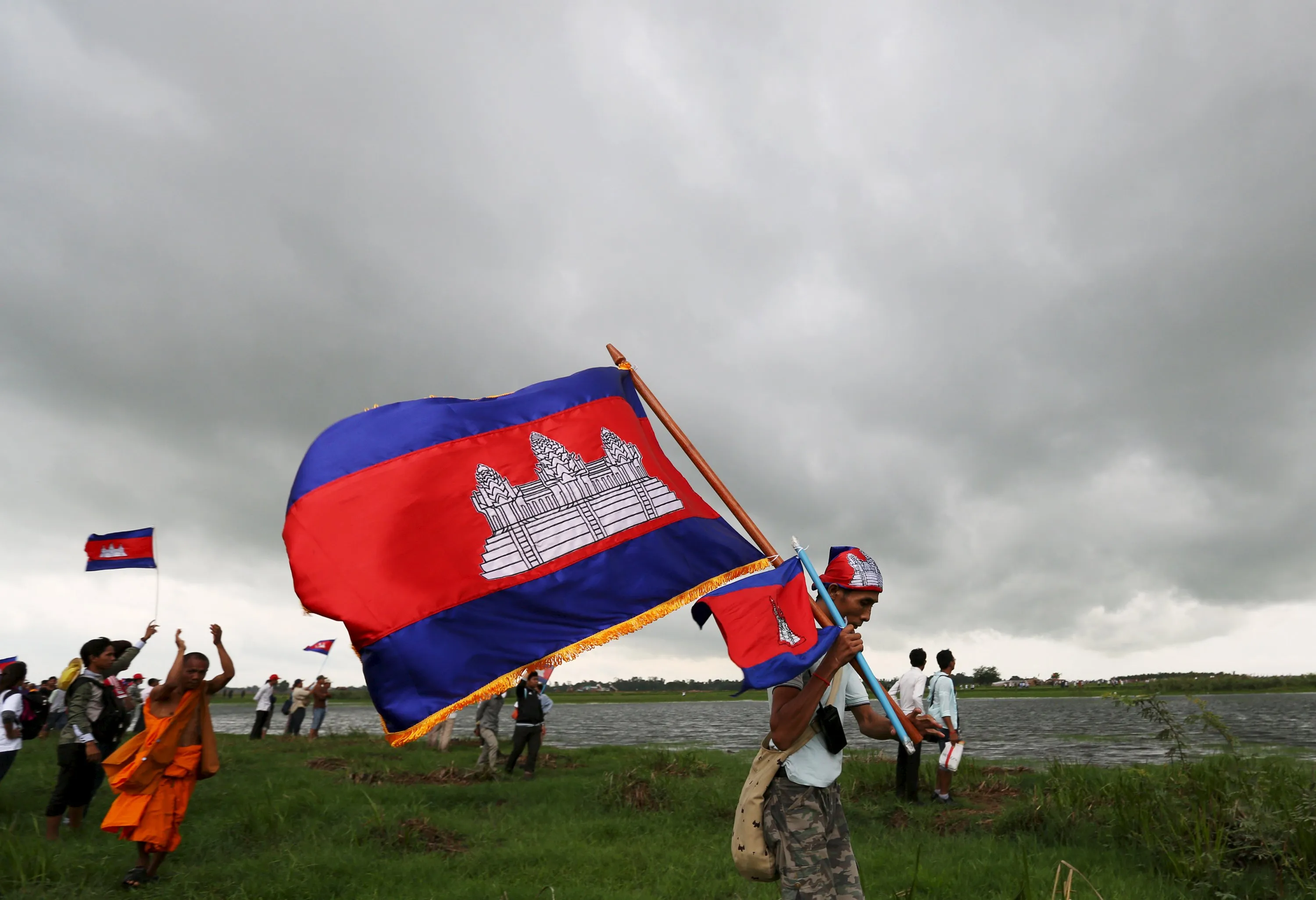 Supporters of the Cambodian National Rescue Party (CNRP), carrying the Cambodian national flag, arrive at a Cambodia-Vietnam border during a visit led by the party in Svay Rieng province July 19, 2015. (Photo by Samrang Pring/Reuters)