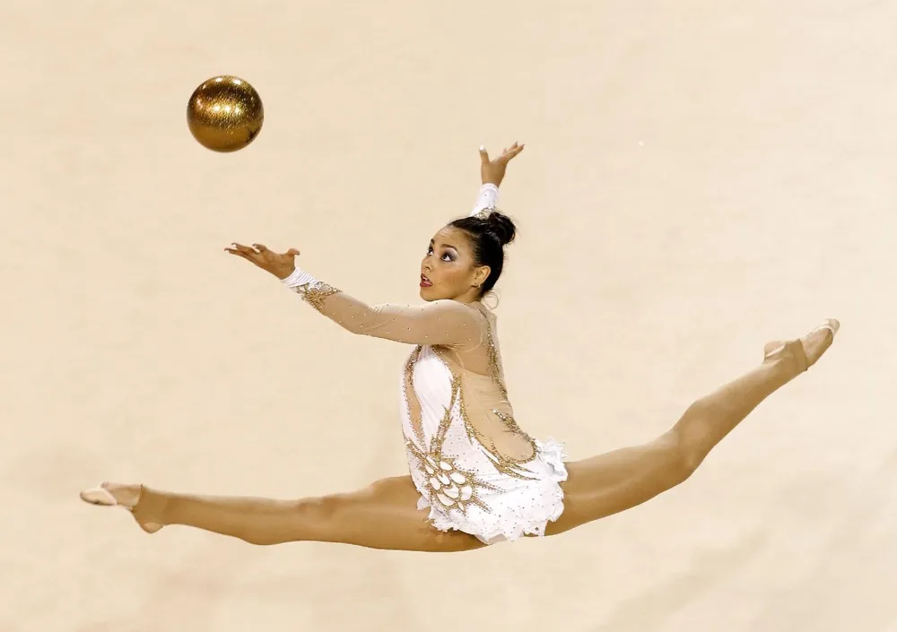 Rut Castillo, of Mexico, performs in the rhythmic gymnastics competition at the Pan Am Games Sunday, July 19, 2015, in Toronto. (Photo by Mark Humphrey/AP Photo)