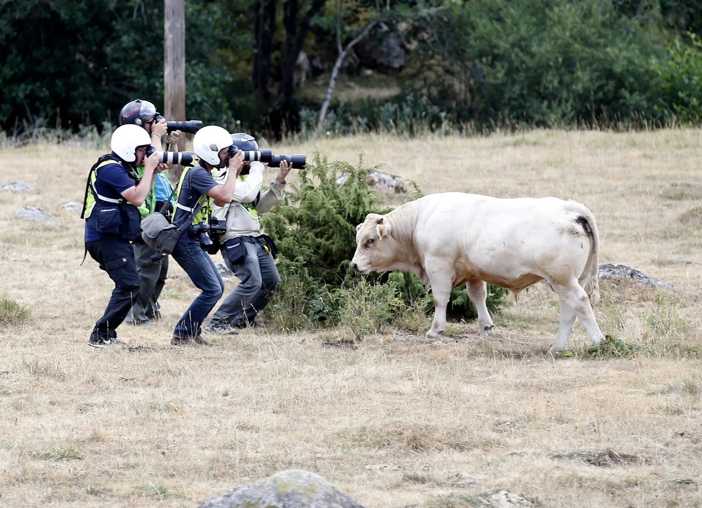 Officials photographers work on the pack of riders during the 15th stage of the 102nd edition of the Tour de France 2015 cycling race over 183 km between Mende and Valence, France, 19 July 2015. (Photo by Sebastien Nogier/EPA)