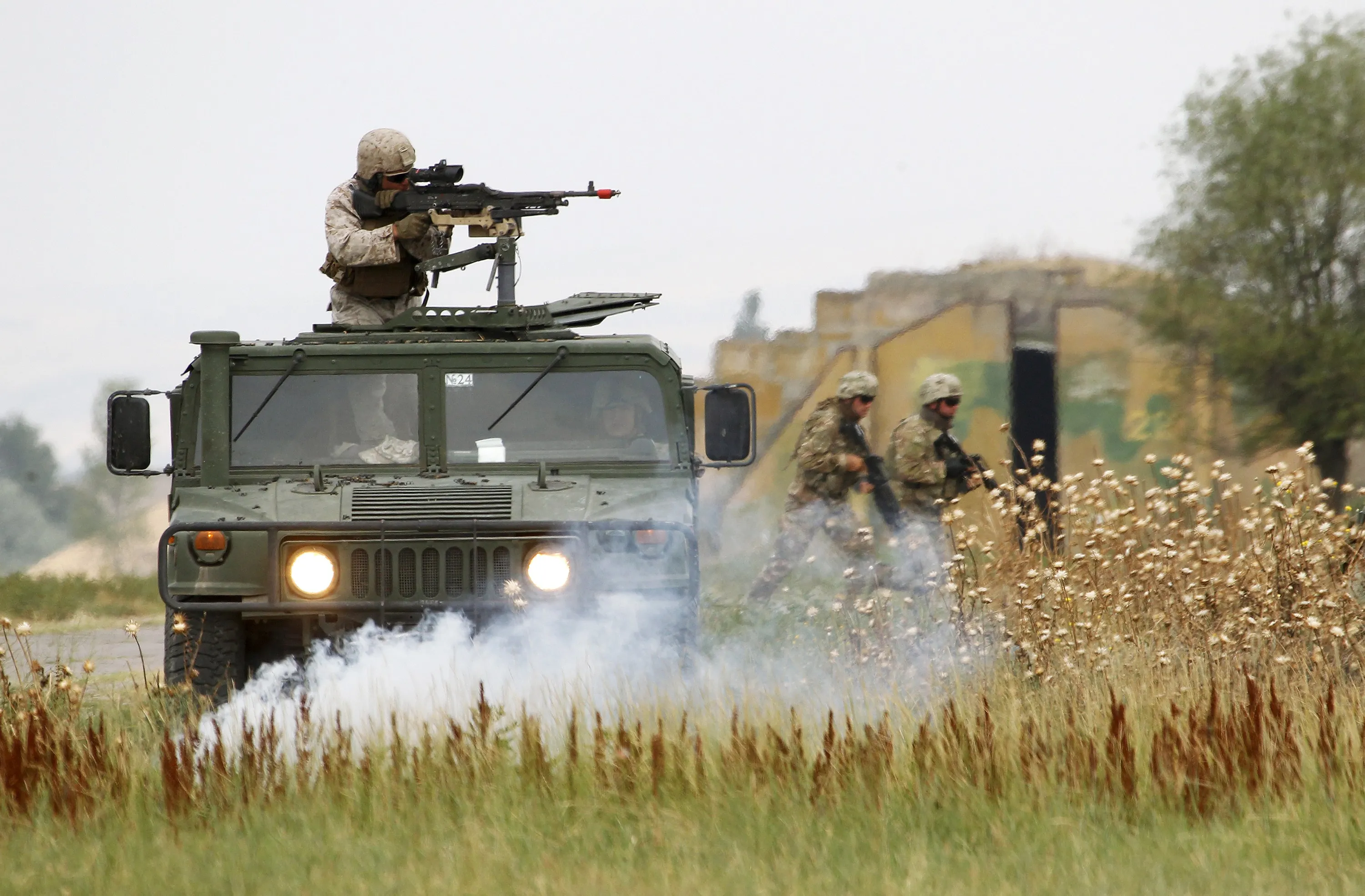 US marine fires his machine gun as Georgian soldiers take positions during a joint military exercise with NATO members, called “Agile Spirit 2015” at the Vaziani military base outside Tbilisi, Georgia, July 21, 2015. (Photo by David Mdzinarishvili/Reuters)