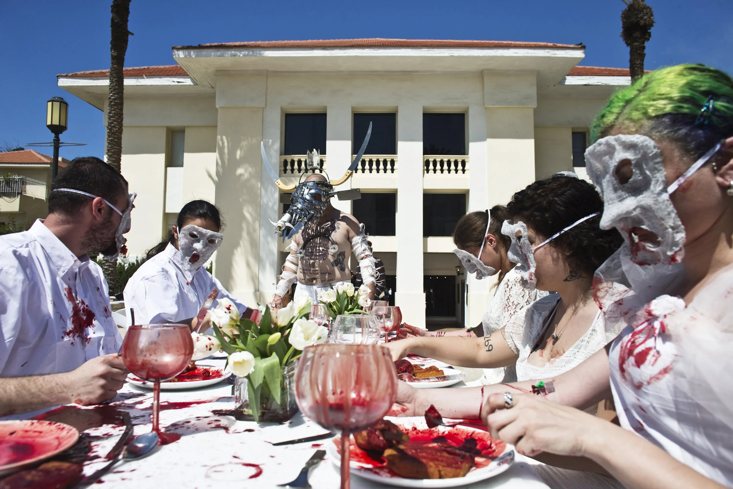 Activists from an animal rights movement take part in an protest piece whereby they drew their own blood to emphasize their ideology, in Tel Aviv, Israel, in this March 21, 2014 file photo. A growing trend has transformed Israel's financial center into a haven for meatless cuisine. Some 400 food establishments are certified “vegan friendly”, including Domino's Pizza, the first in the global chain to sell vegan pizza topped with non-dairy cheese. (Photo by Nir Elias/Reuters)