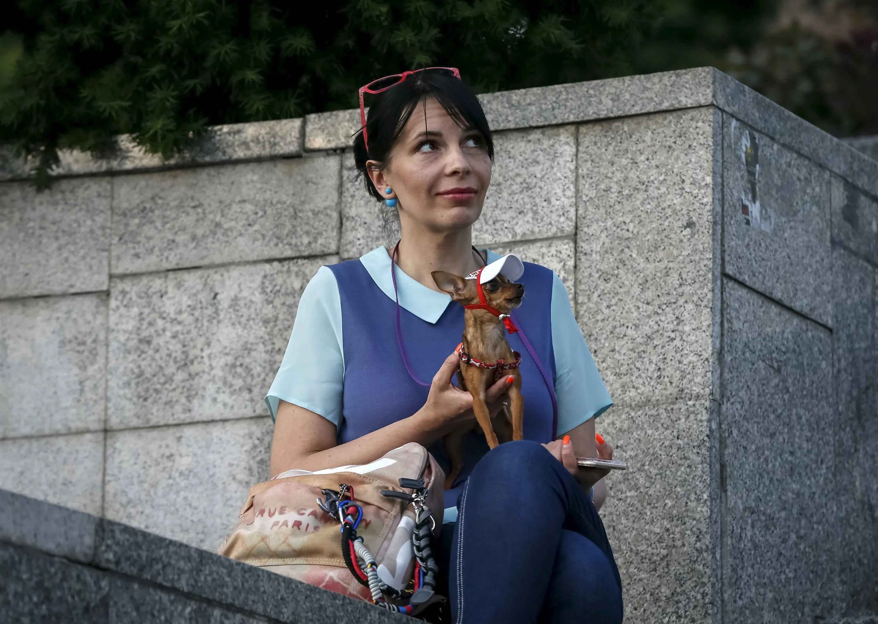 A woman with her dog attends an anti-government rally of members of the far-right radical group Right Sector in Kiev, Ukraine, July 21, 2015. (Photo by Gleb Garanich/Reuters)