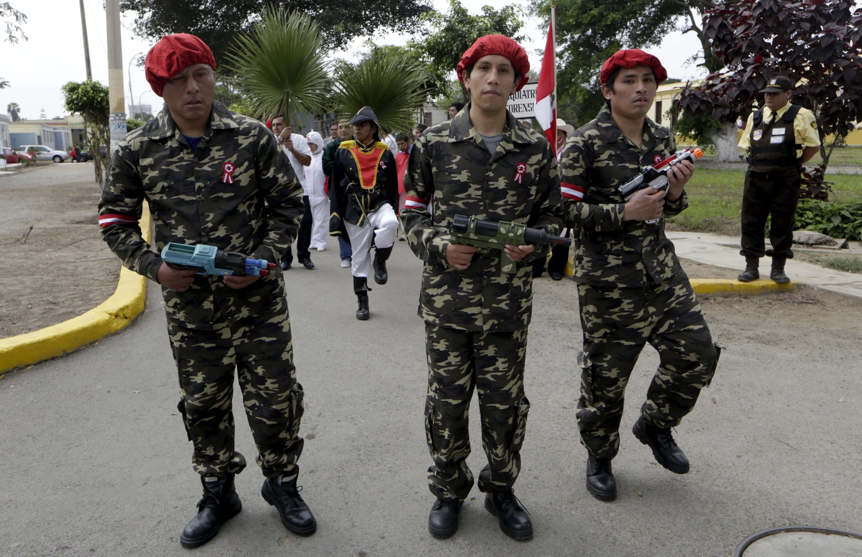 Patients in military costumes parade during Independence Day celebrations, at the Larco Herrera psychiatric hospital in Lima July 22, 2015. (Photo by Mariana Bazo/Reuters)