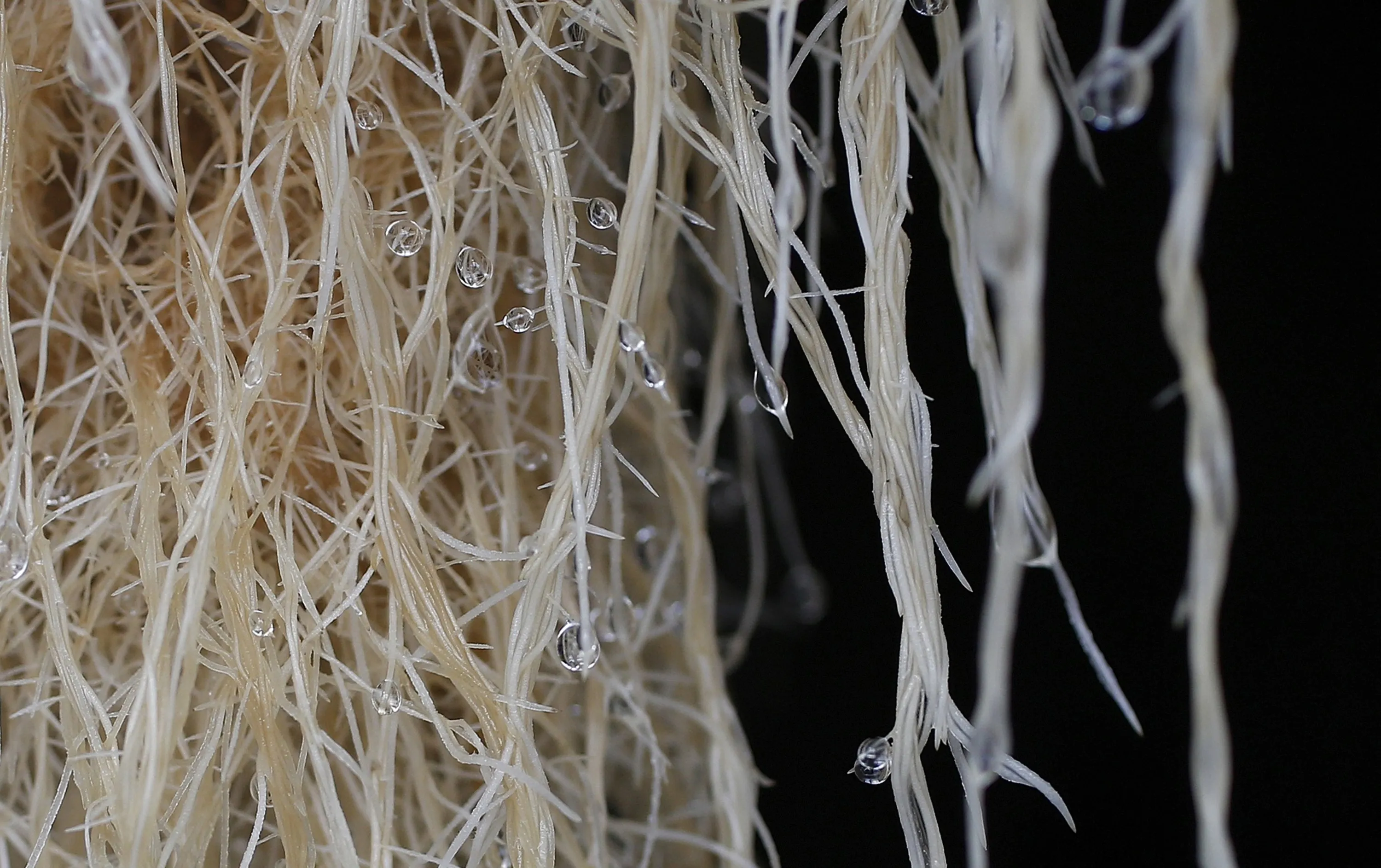 Plants roots are seen after being misted with mineral salts at the Plant Advanced Technologies (PAT) company greenhouse in Laronxe near Nancy, Eastern France, June 19, 2015. (Photo by Vincent Kessler/Reuters)