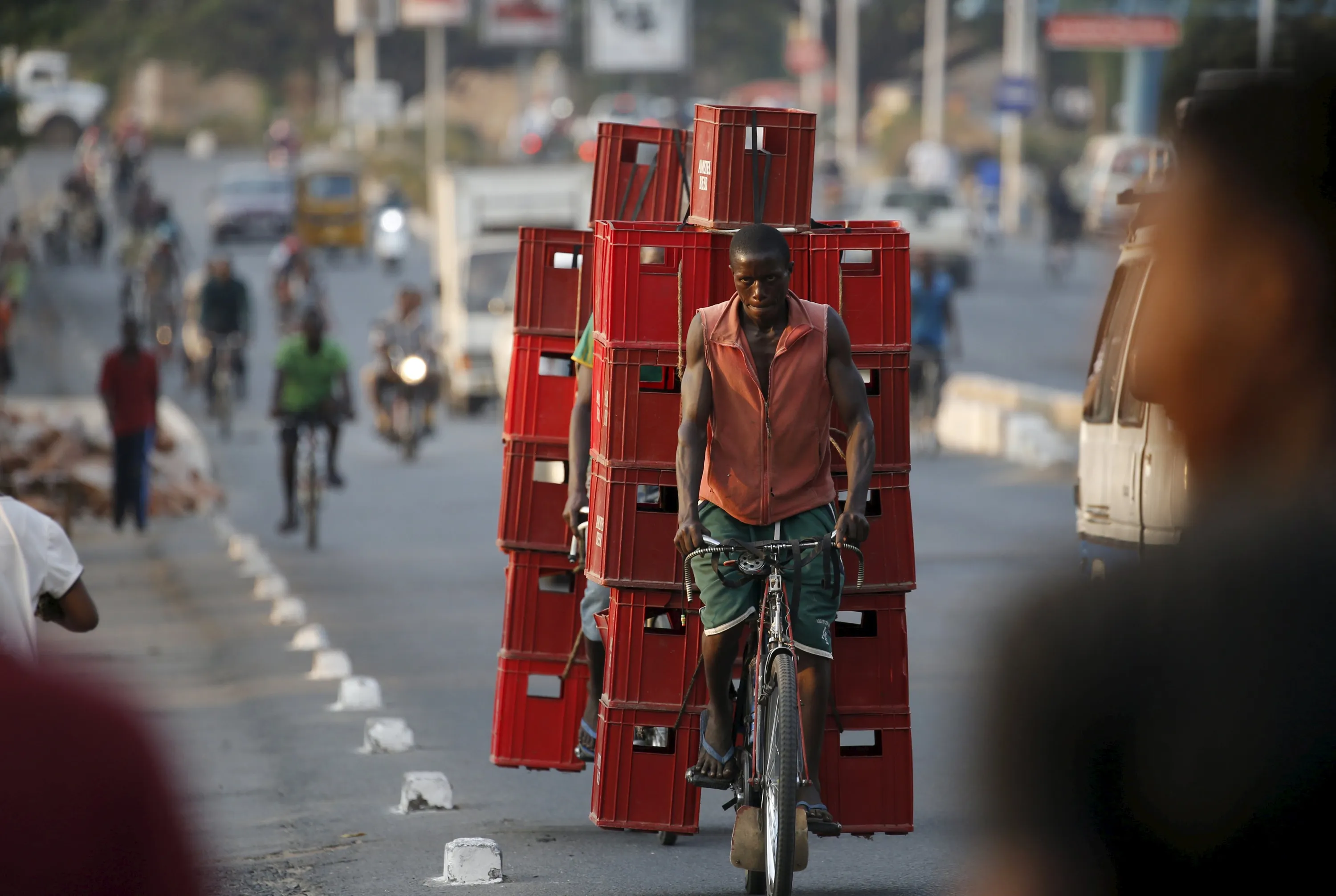 A man transports crates on his bicycle in Burundi's capital Bujumbura, July 22, 2015, as the country awaits the results of yesterday's presidential elections. Opposition politicians have accused Burundi's President Pierre Nkurunziza of violating the constitution by running for a third term and boycotted Tuesday's election in the world's third poorest country. (Photo by Mike Hutchings/Reuters)