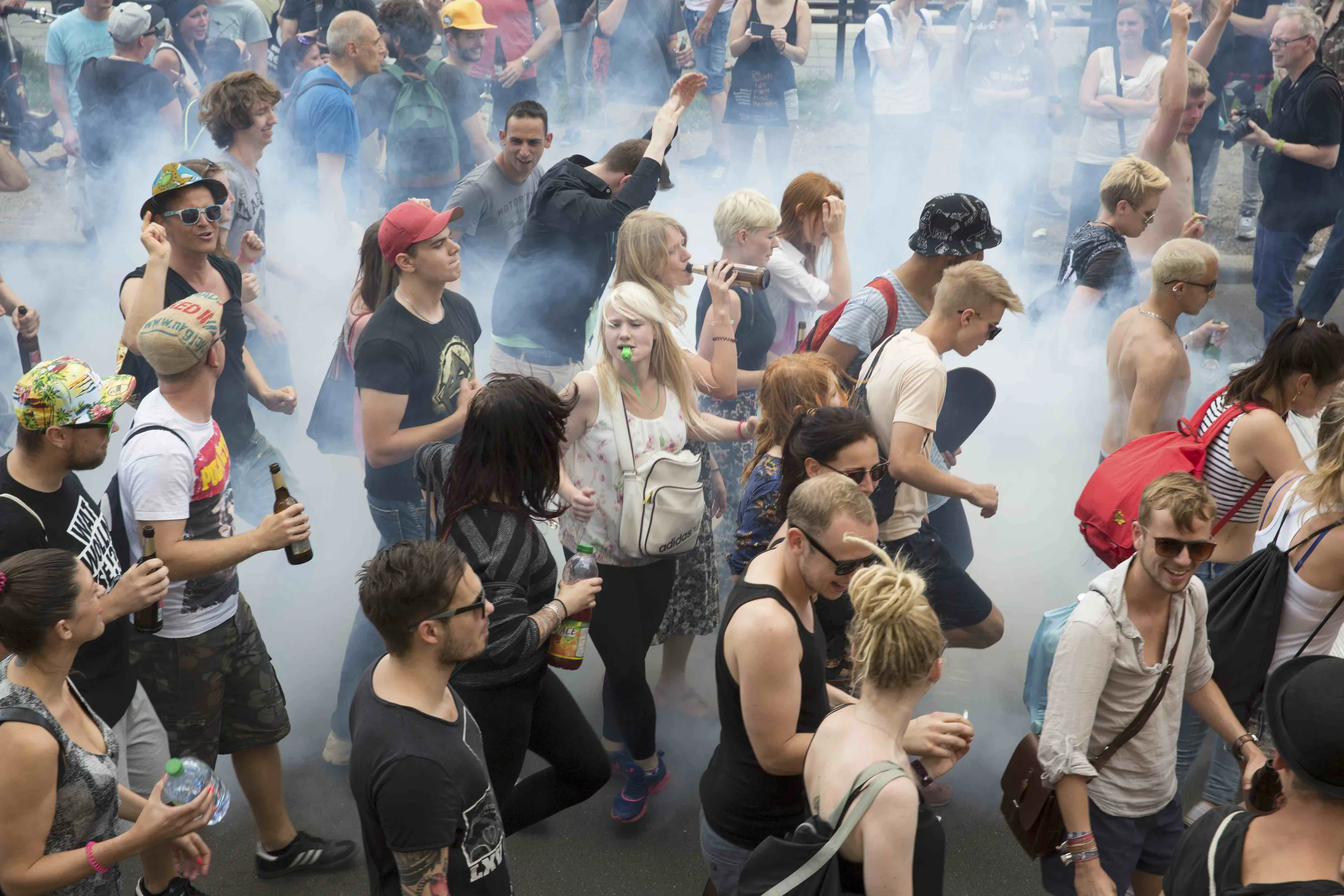 Participitants of the techno parade “Zug der Liebe” (Train of love) dance in a street in Berlin, Germany, July 25, 2015. (Photo by Axel Schmidt/Reuters)