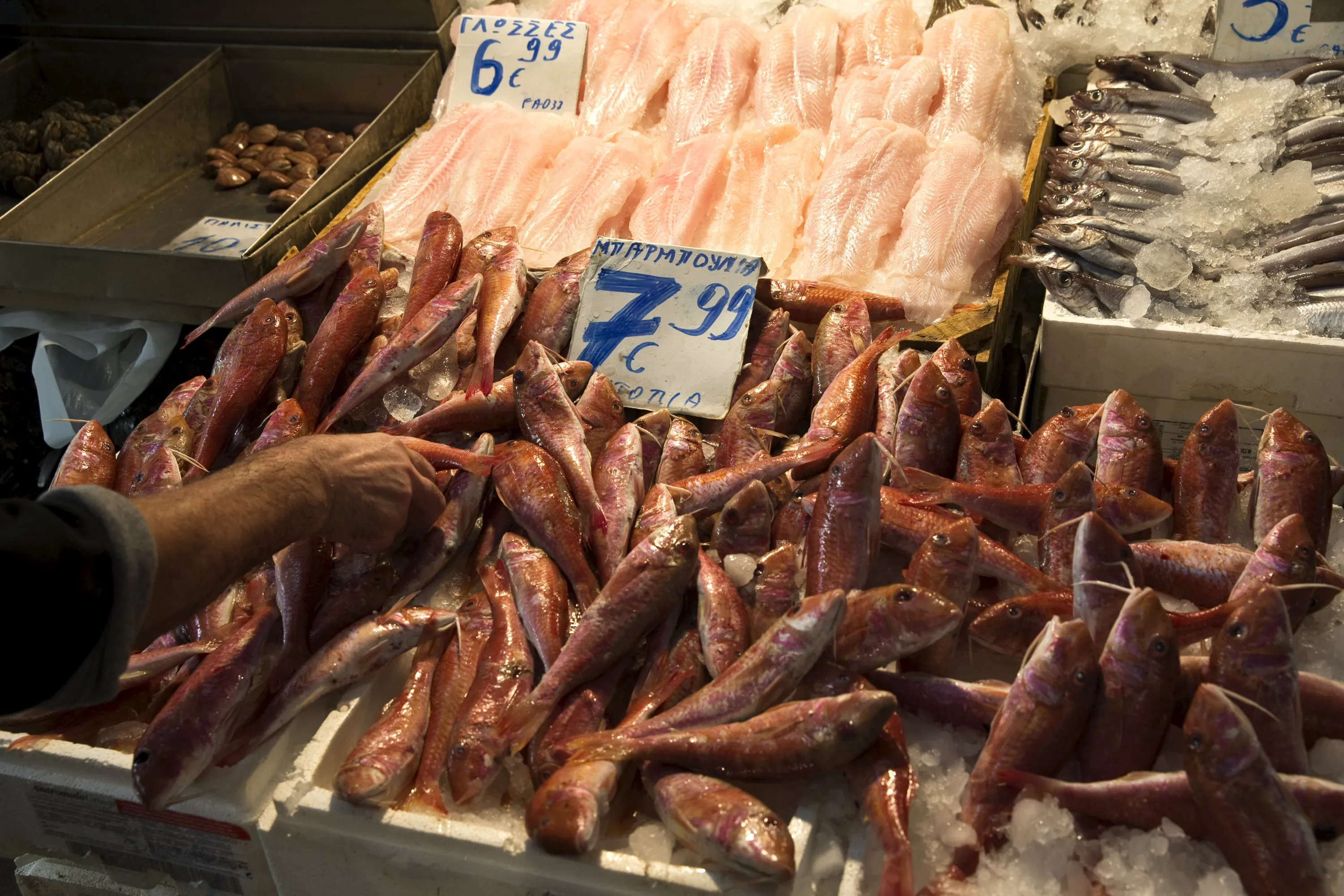 A fishmonger arranges fish on his stall inside Athens' main fish market July 25, 2015. The International Monetary Fund said on Friday it had received a letter from Greece seeking a loan facility. Greece is due to begin talks with European Union and IMF lenders on a new bailout deal. (Photo by Ronen Zvulun/Reuters)