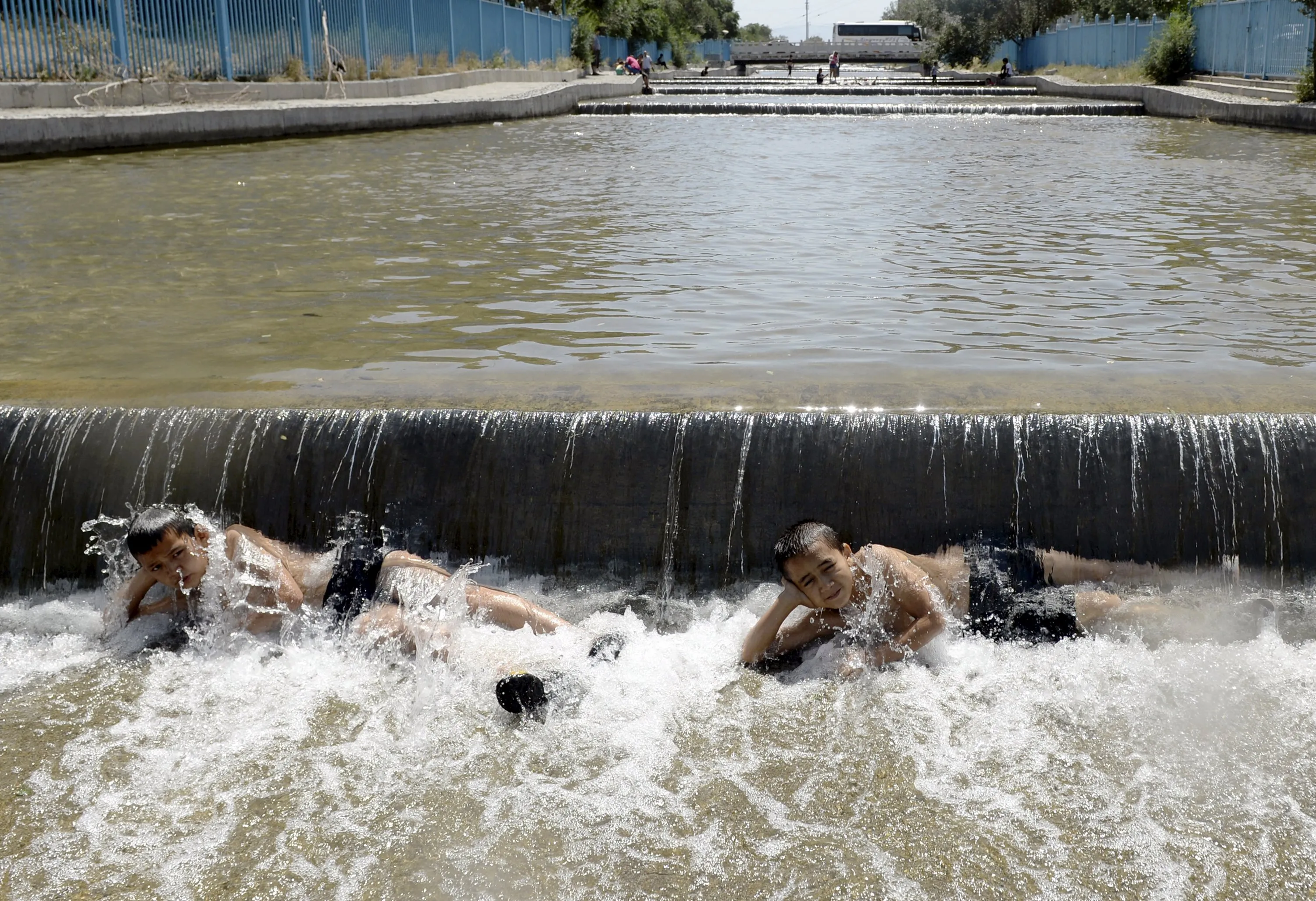 Children lie in a canal to cool off from summer heat in Urumqi, Xinjiang Uighur Autonomous Region, China, July 22, 2015. The highest temperature in the city reached 40 degrees Celsius (104 degrees Fahrenheit) on Wednesday, local media reported. (Photo by Reuters/Stringer)