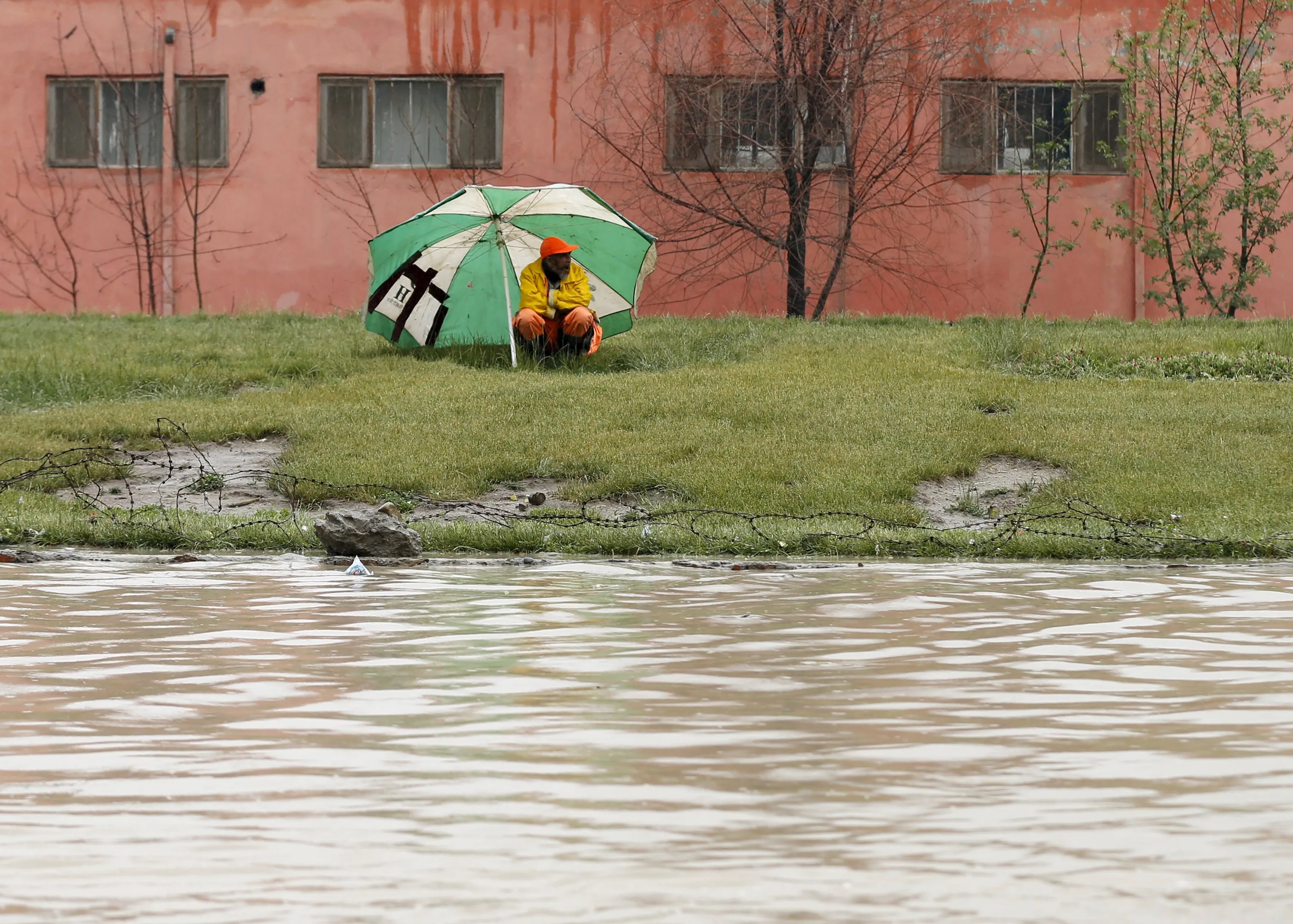 A municipality worker takes cover from the rain in Kabul, Afghanistan May 11, 2015. (Photo by Mohammad Ismail/Reuters)