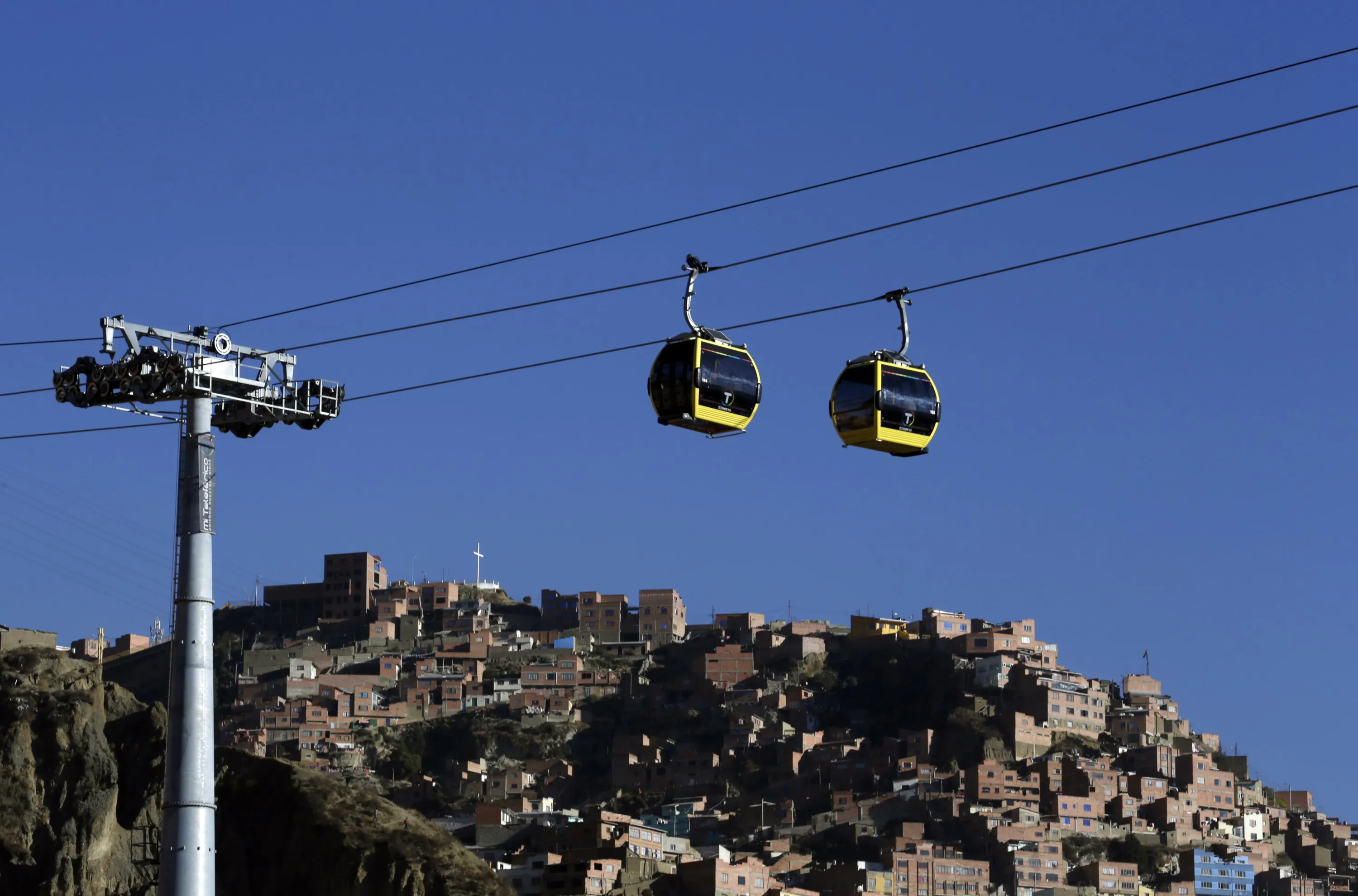 Cable car cabins travel over La Paz, July 23, 2015. (Photo by David Mercado/Reuters)
