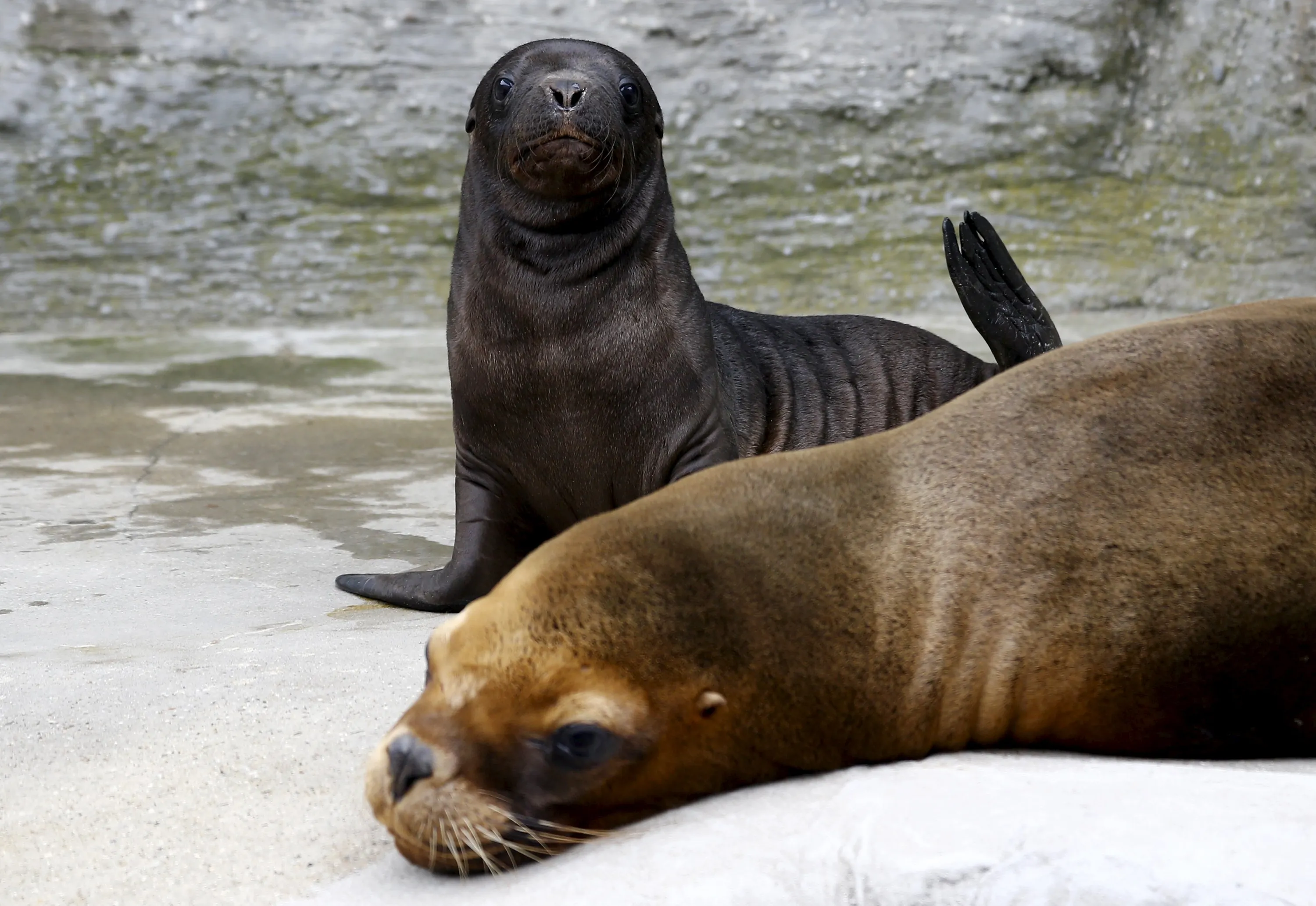 A ten days old South American sea lion pup sits next to its mother Lunita at the “Tiergarten Schoenbrunn” Zoo in Vienna, Austria, July 28, 2015. The pup was born in the zoo and weighs about 14 kilograms (30 pounds). (Photo by Leonhard Foeger/Reuters)