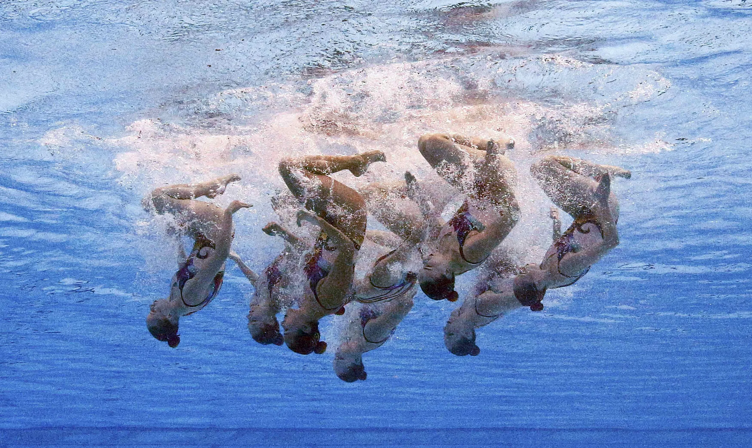 Members of Team Canada are seen underwater as they perform in the synchronised swimming team free routine preliminary at the Aquatics World Championships in Kazan, Russia July 28, 2015. (Photo by Michael Dalder/Reuters)