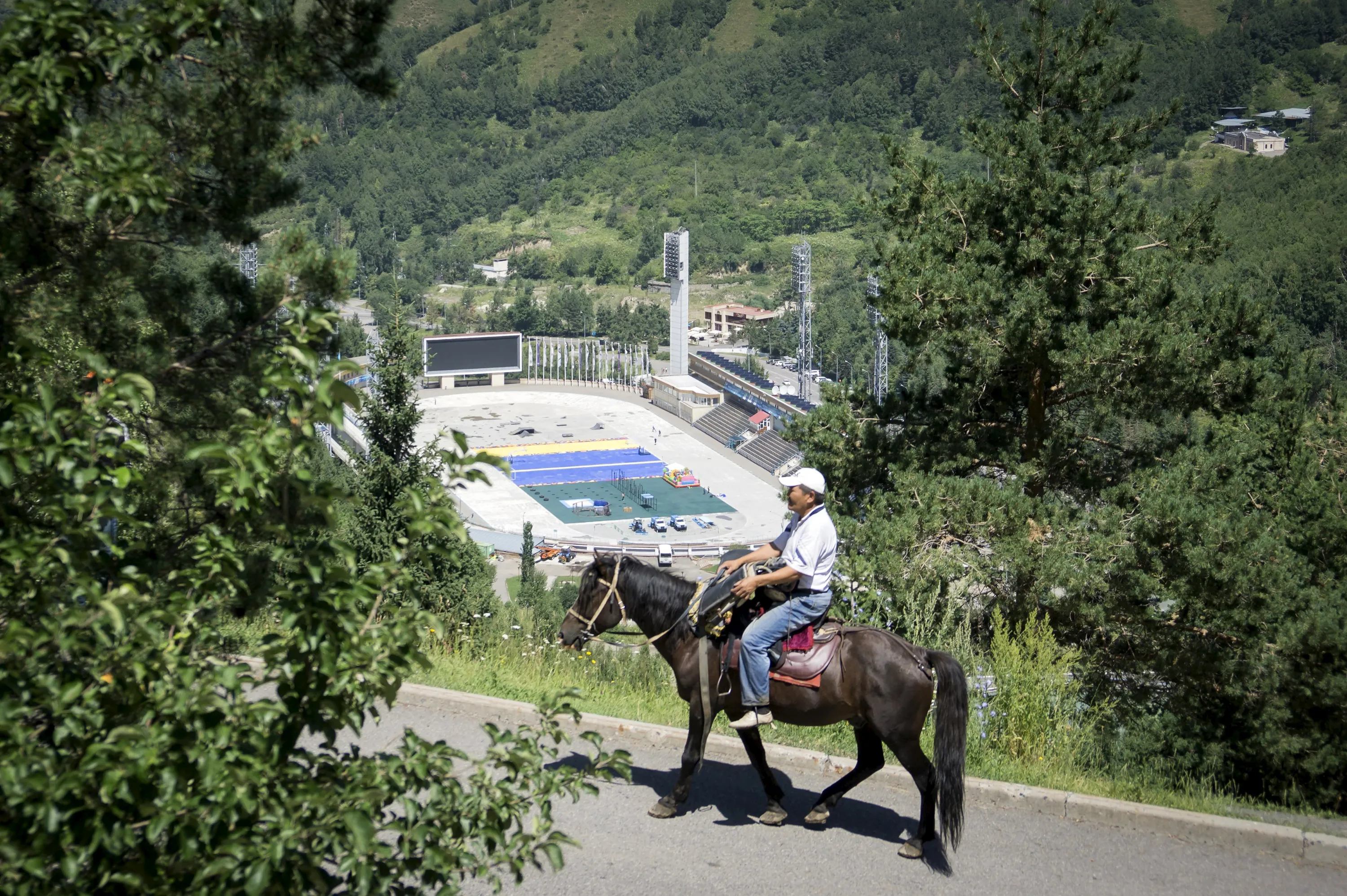 A man rides a horse near the Medeu skating oval in Almaty, Kazakhstan, July 26, 2015. (Photo by Shamil Zhumatov/Reuters)