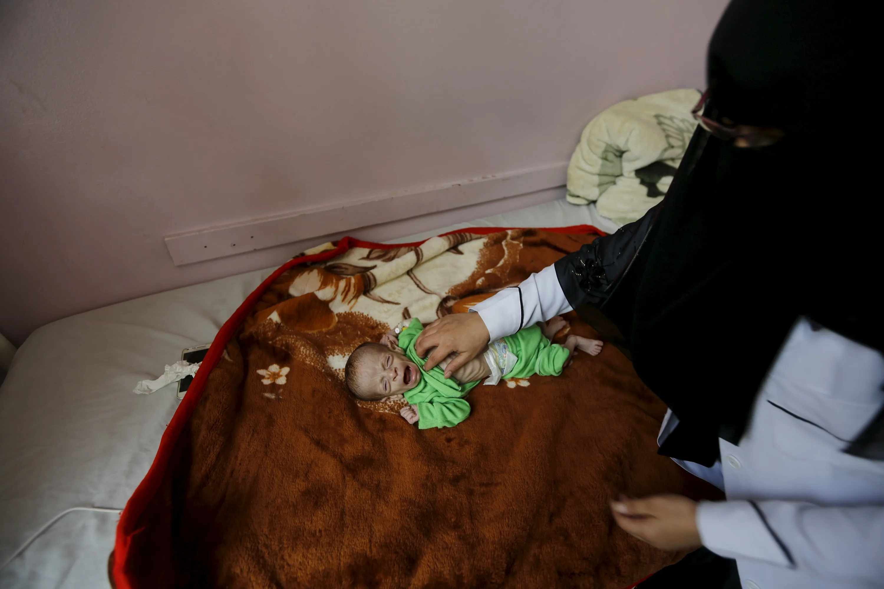 A nurse checks a malnourished child at a hospital in Yemen's capital Sanaa July 28, 2015. The war in Yemen has killed more than 3,500 people. U.N. children's agency UNICEF says the death toll includes 365 children. (Photo by Khaled Abdullah/Reuters)