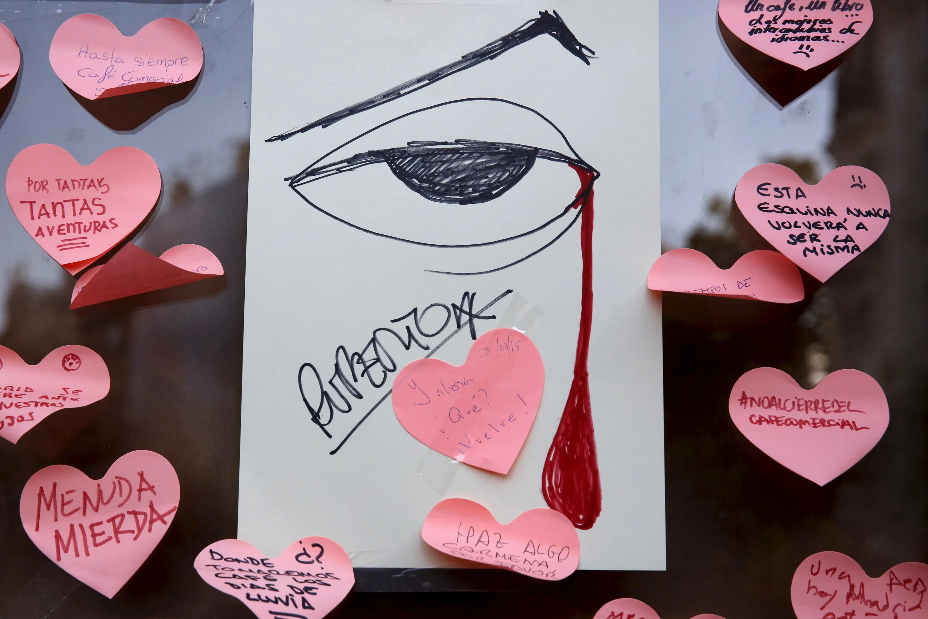 Graffiti is seen on the window of El Comercial cafe in Madrid, Spain, July 28, 2015. (Photo by Juan Medina/Reuters)