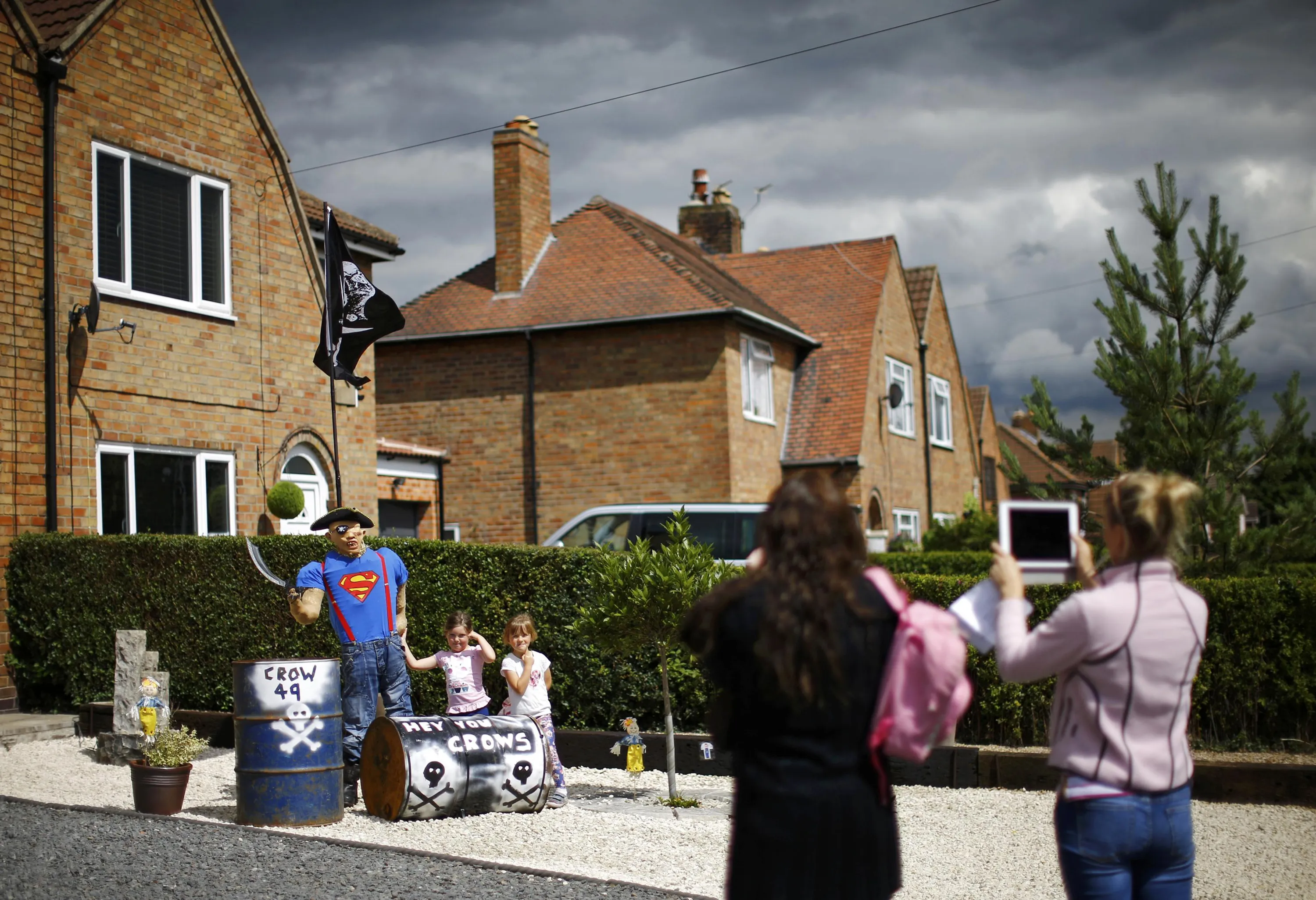 Children have their photographs taken with a pirate scarecrow during the Scarecrow Festival in Heather, Britain July 29, 2015. (Photo by Darren Staples/Reuters)