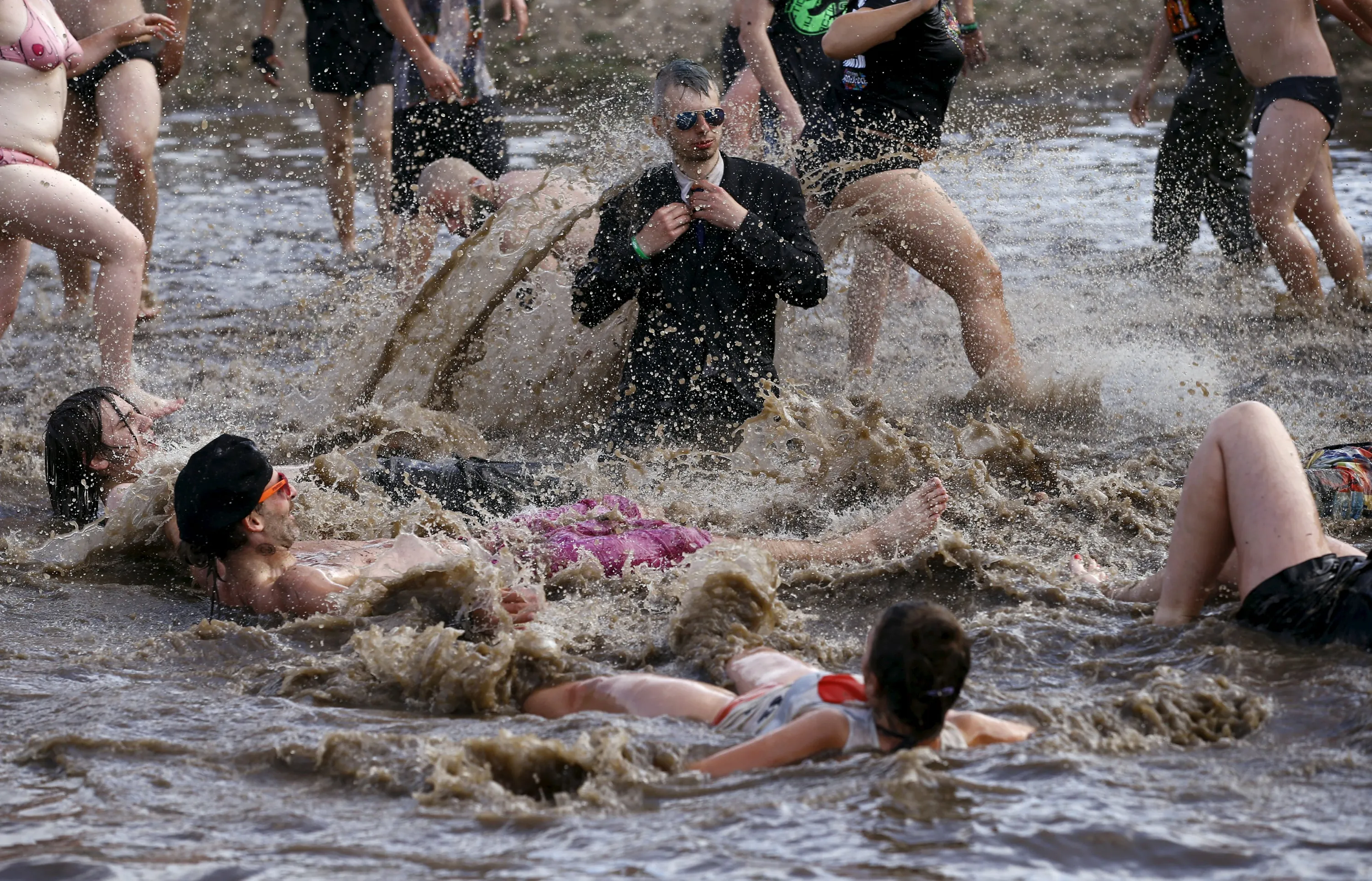 Revelers play in a mud pit during the 21st Woodstock Festival in Kostrzyn-upon-Odra, Poland July 31, 2015. (Photo by Kacper Pempel/Reuters)