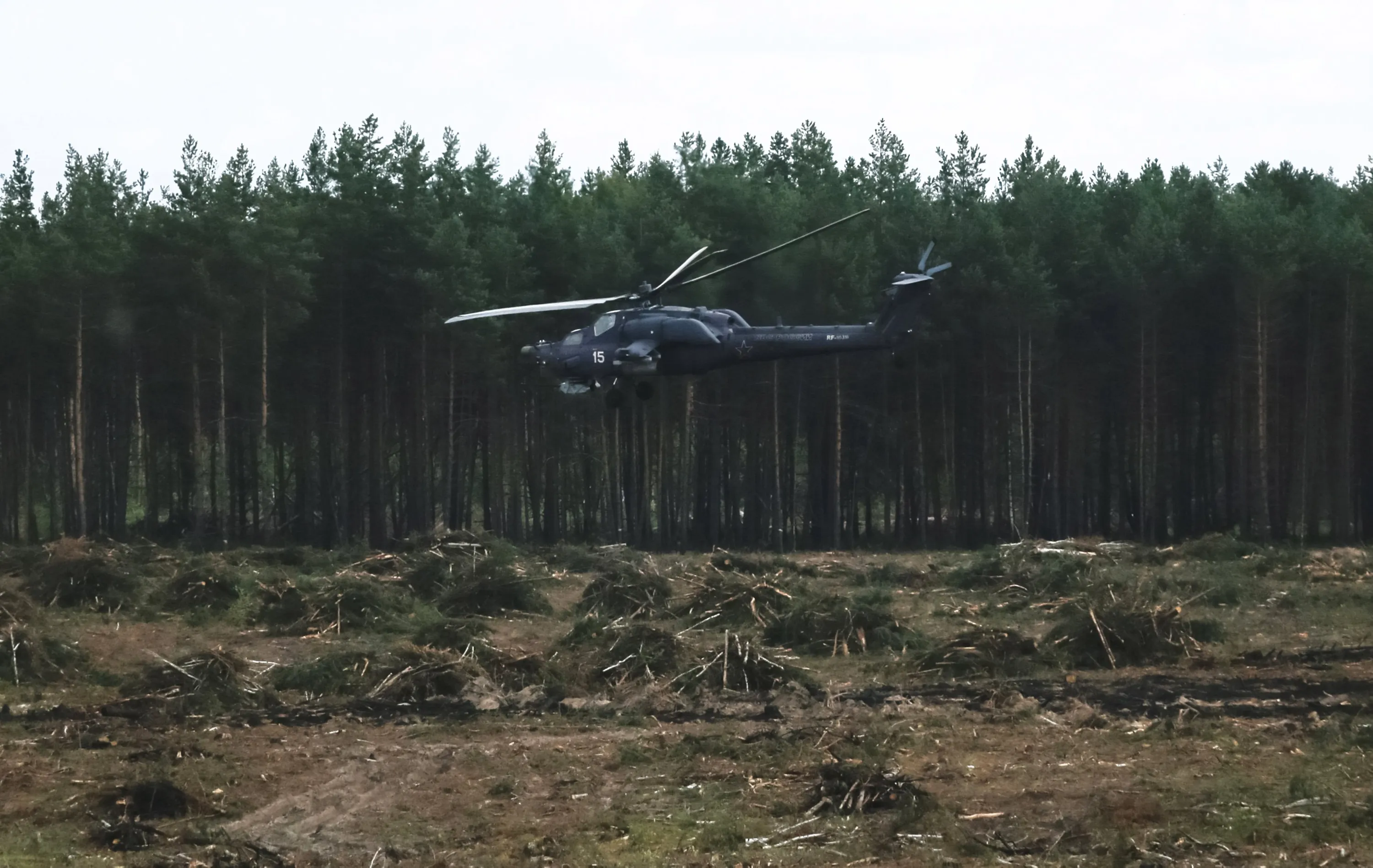 A Mi-28N from the Berkuty (Golden Eagles) helicopter display team descends before a hard touchdown during the “Aviadarts” military aviation competition at the Dubrovichi range near Ryazan, Russia, August 2, 2015. The aircraft started dipping down due to back propeller failure and crashed, killing one of two pilots, according to a Reuters photographer and official representatives of the competition. (Photo by Maxim Shemetov/Reuters)