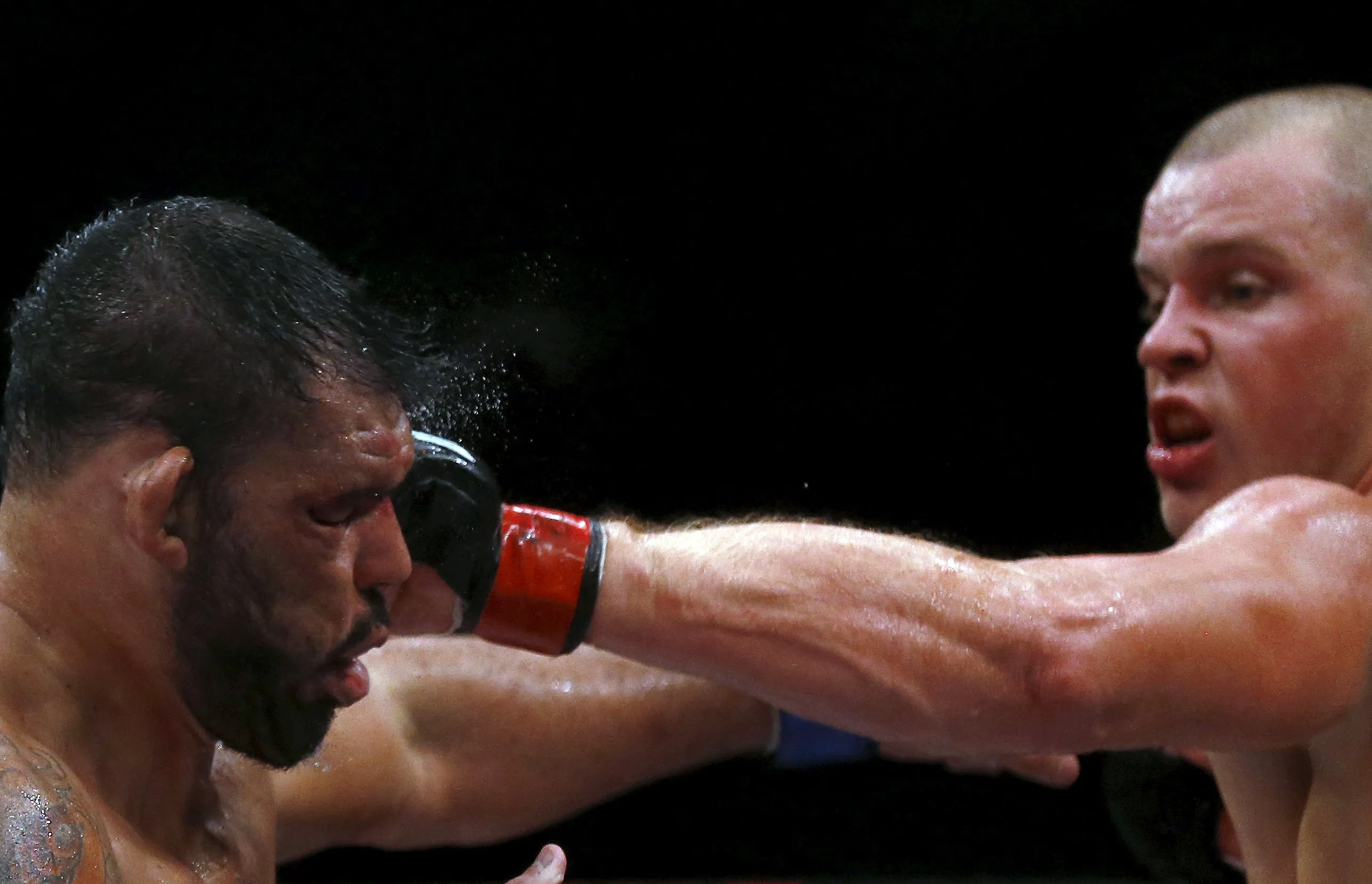 Minotauro Nogueira (L) of Brazil fights with Stefan Struve of Netherlands during their Ultimate Fighting Championship (UFC) match, a professional mixed martial arts (MMA) competition in Rio de Janeiro, Brazil August 1, 2015. (Photo by Ricardo Moraes/Reuters)