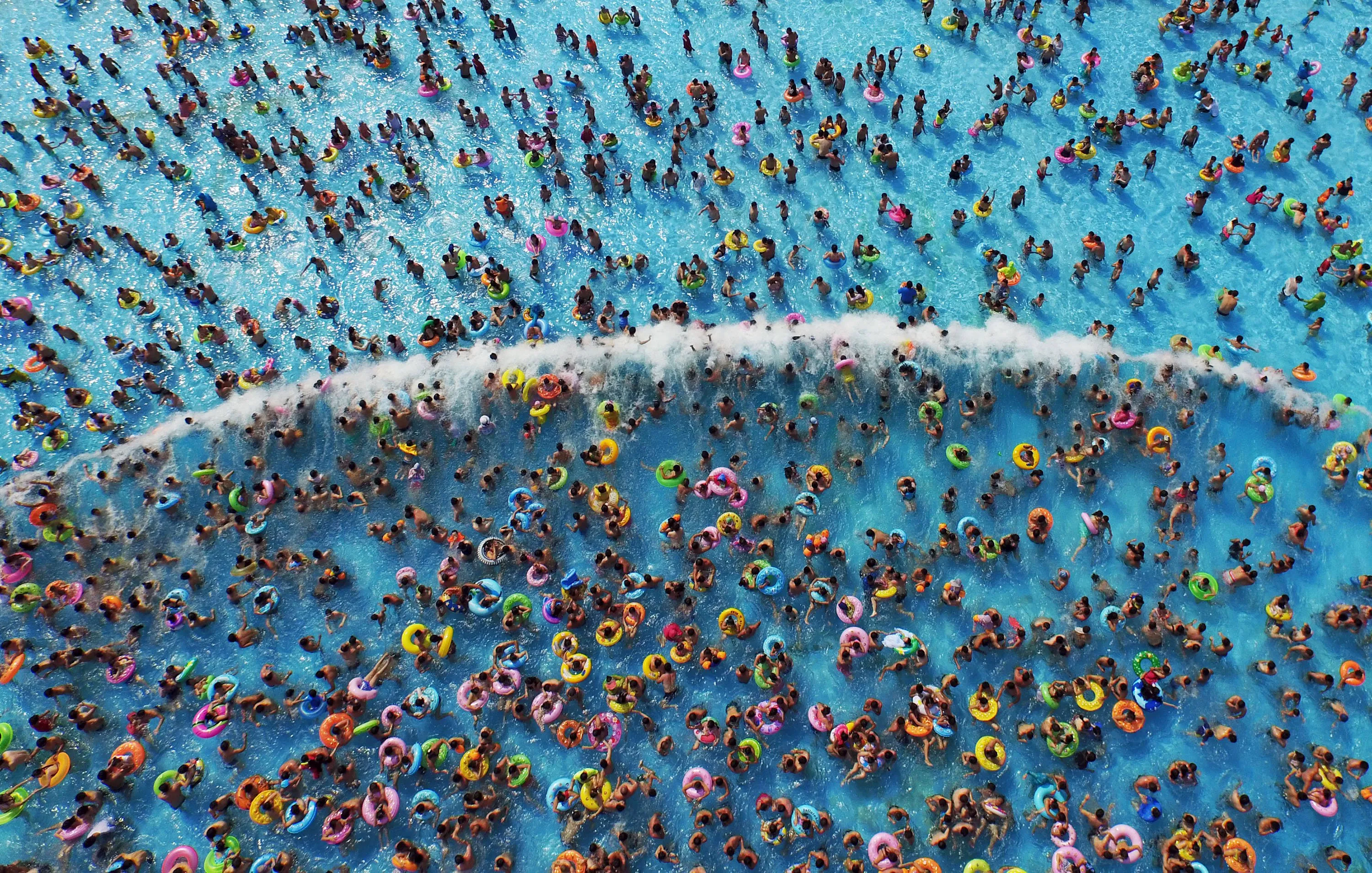 People cool off at a water park in Nanjing, Jiangsu province, August 1, 2015. Temperatures hit 35 degrees Celsius (95 degrees Fahrenheit) in Nanjing on Saturday. (Photo by Reuters/China Daily)