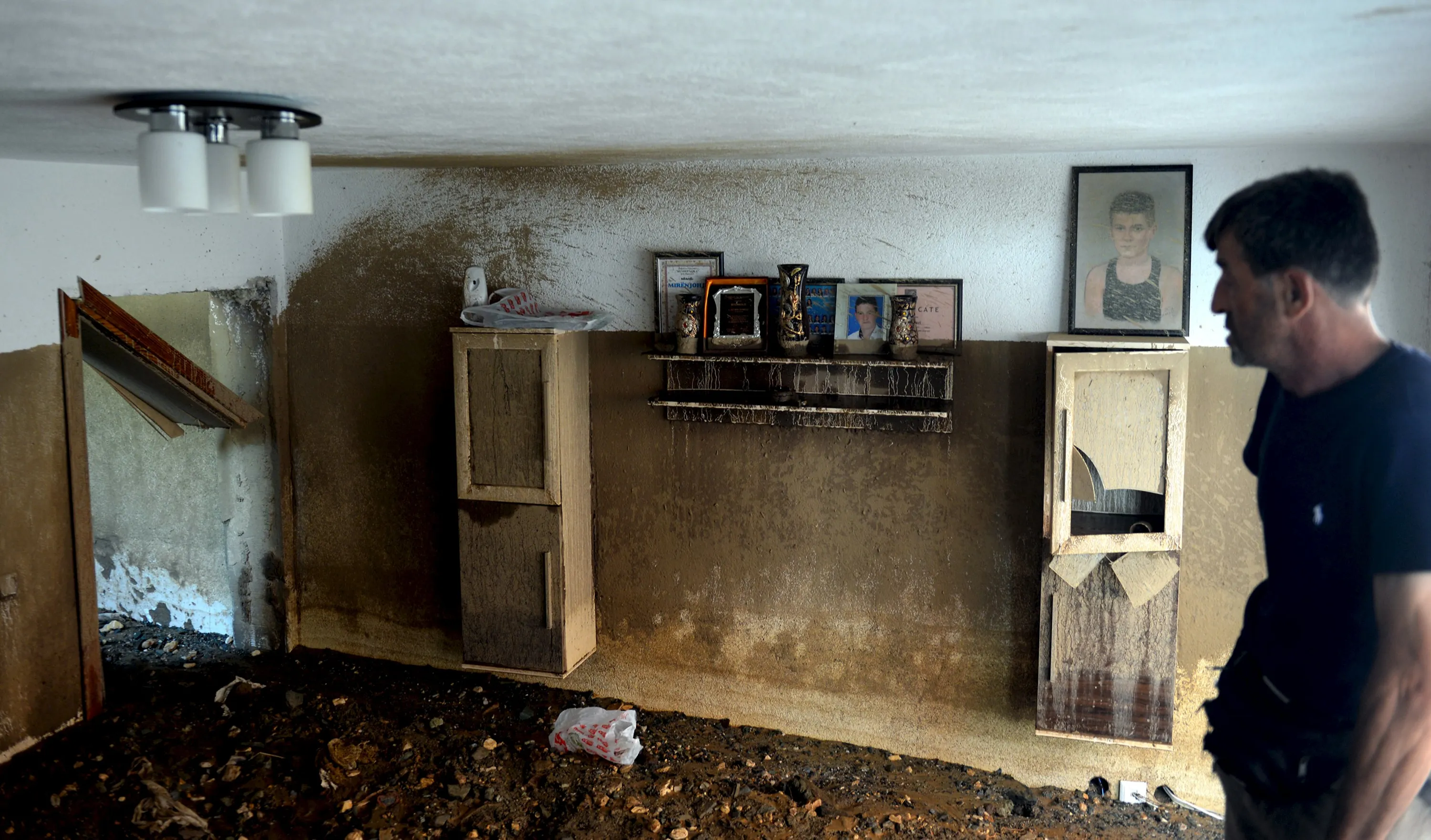 A man walks inside a house in the flooded village of Shipkovitsa, near the town of Tetovo, Macedonia, August 4, 2015. (Photo by Reuters/Stringer)