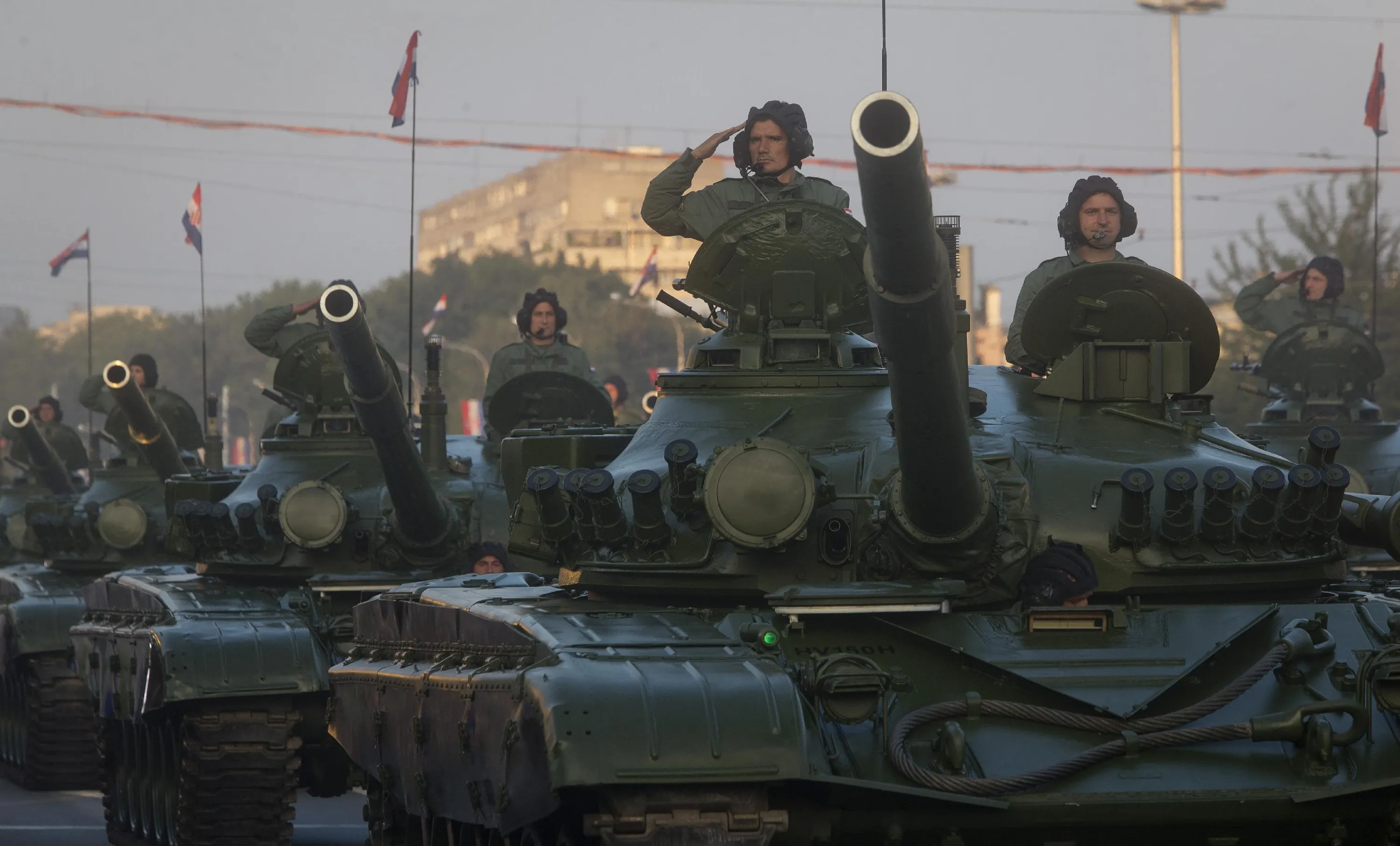 Troops drive tanks during a military parade marking 20th anniversary of the “Operation Storm” that crushed Serb insurgency in Croatia, in Zagreb, Tuesday, August 4, 2015. (Photo by Darko Bandic/AP Photo)