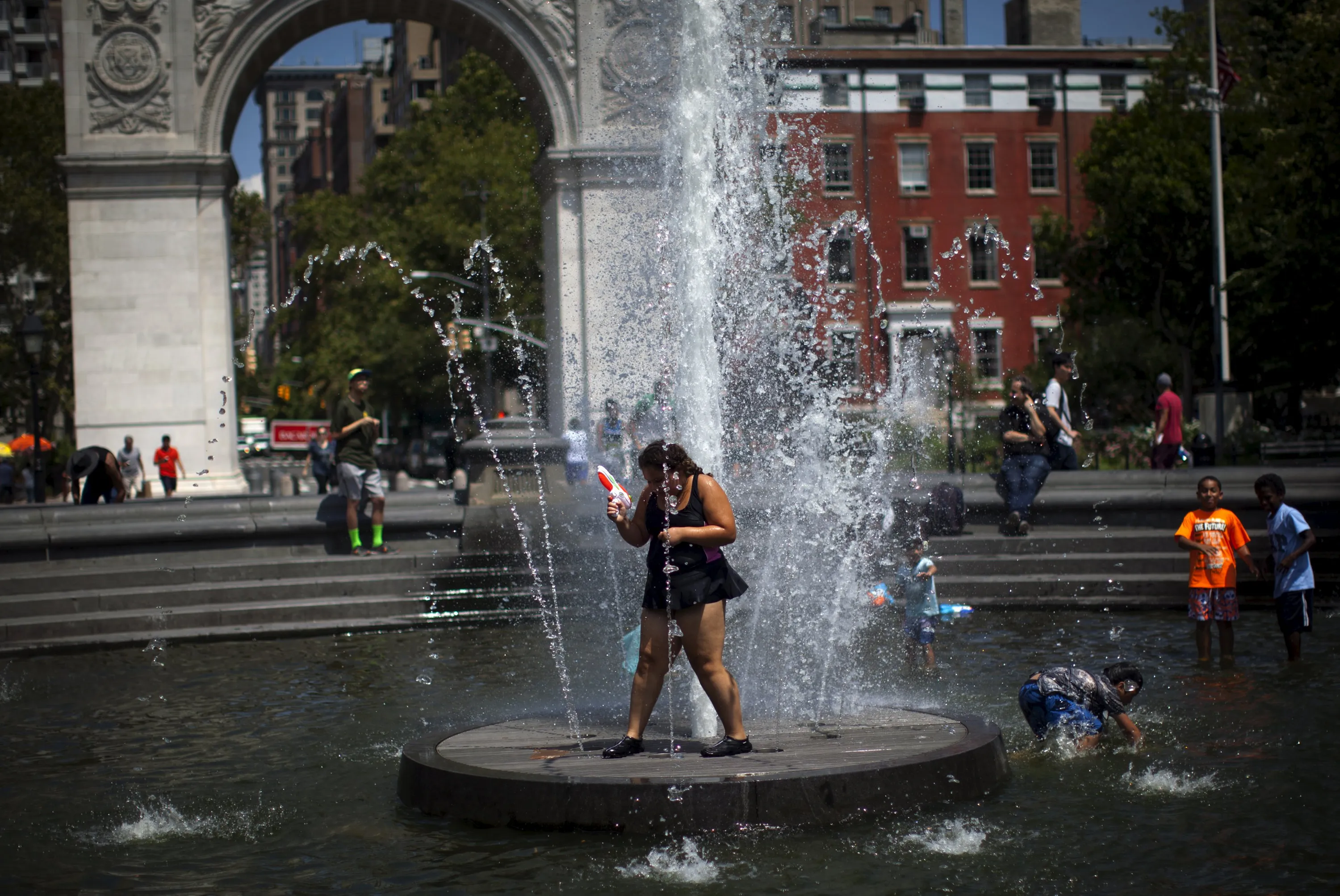 Children cool off in a fountain in Washington Square Park in the Manhattan borough of New York City on a hot summer day August 4, 2015. (Photo by Mike Segar/Reuters)