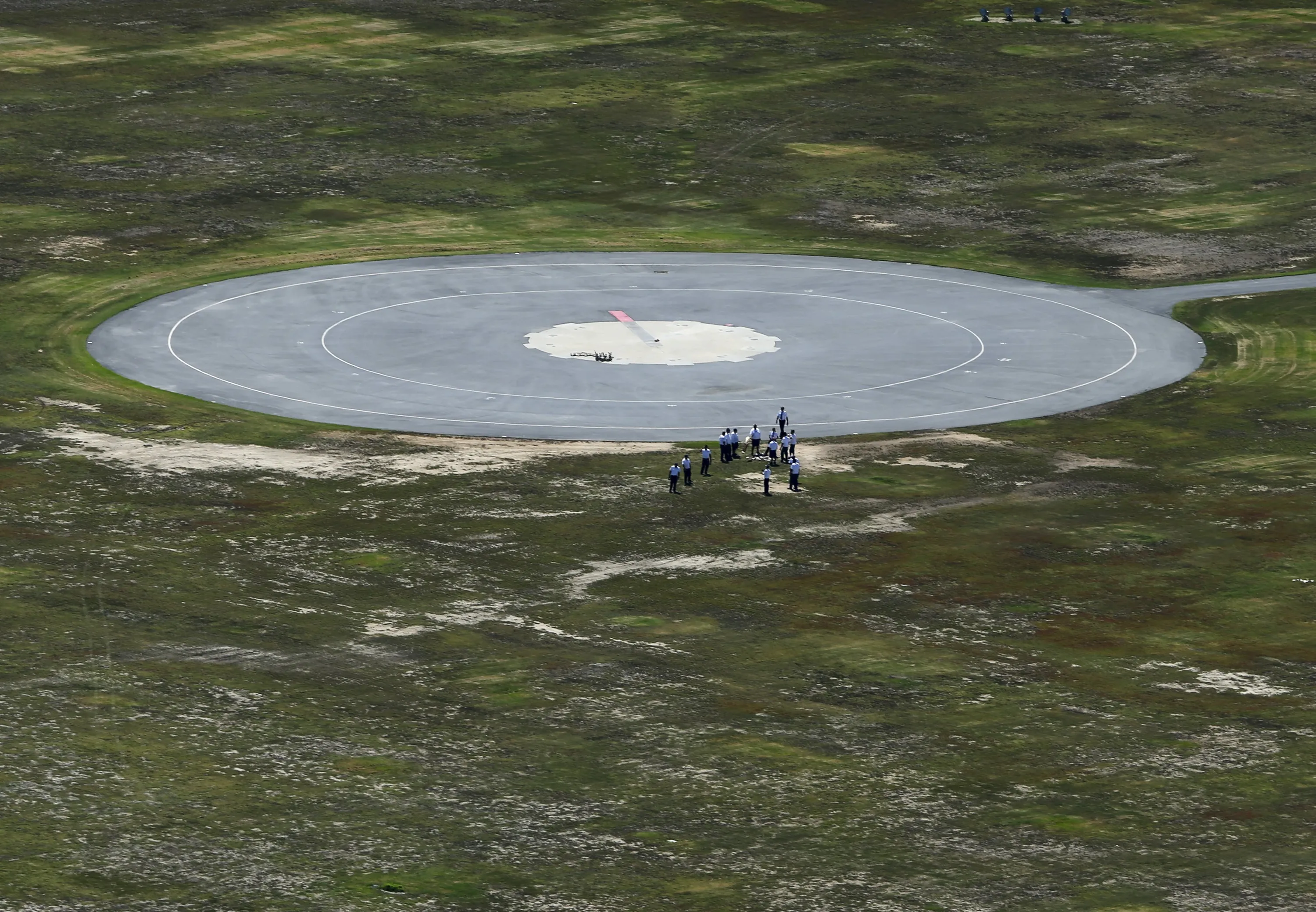 A grounds crew awaits the arrival of the Goodyear blimp “Spirit of America” as it comes down to land in Carson, California August 5, 2015. Christened in 2002, the air ship is being retired after 8,000 flights and replaced with a newer more modern version named the “Spirit of Innovation” in September. (Photo by Mike Blake/Reuters)
