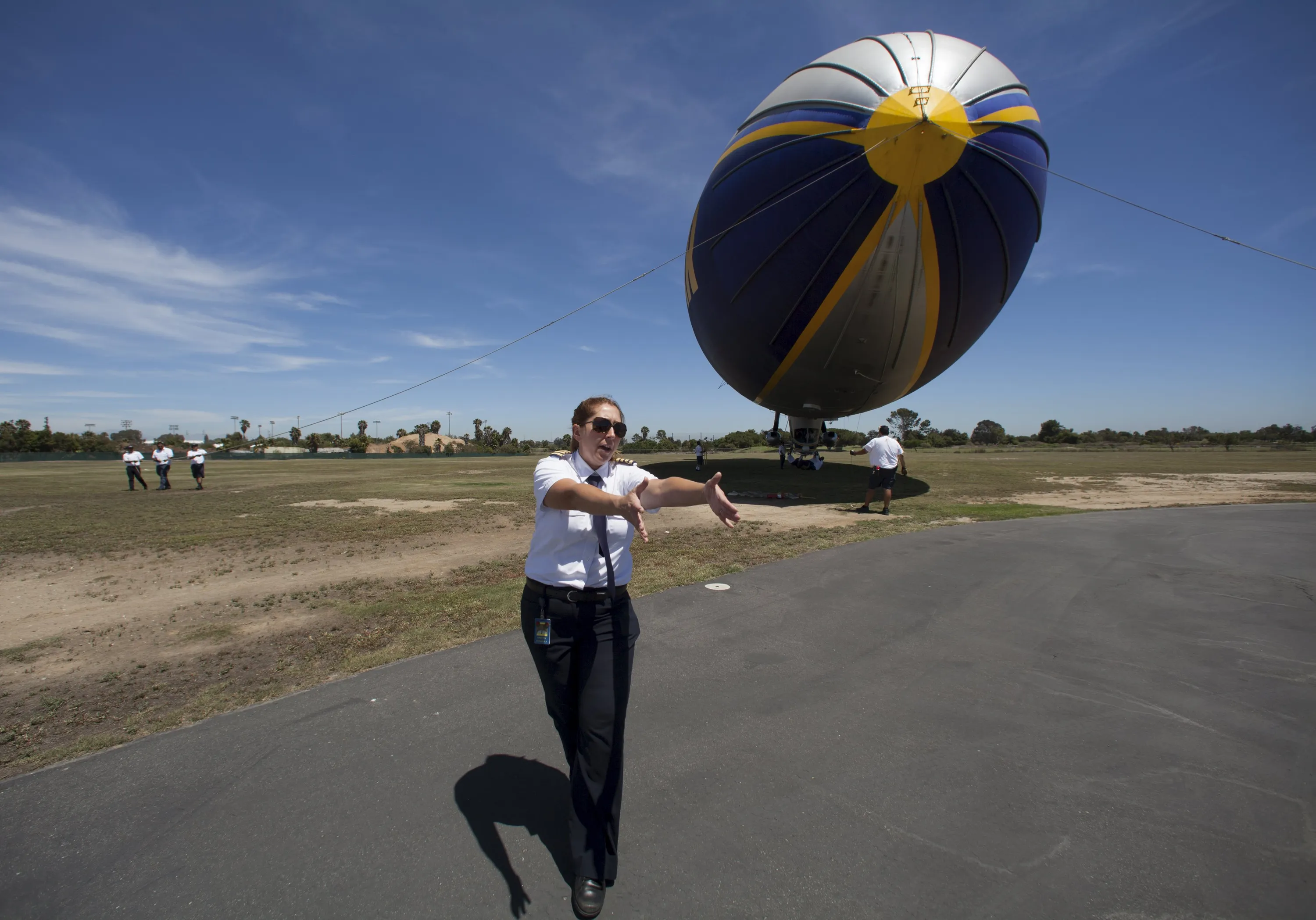 One of only three active female blimp pilots in the world, Kristen Arambula guides her passengers towards the Goodyear blimp “Spirit of America” in Carson, California August 5, 2015. (Photo by Mike Blake/Reuters)