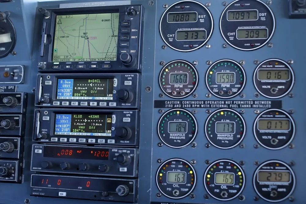 The cockpit controls of the Goodyear blimp “Spirit of America” are shown as it flies over Long Beach, California August 5, 2015. (Photo by Mike Blake/Reuters)