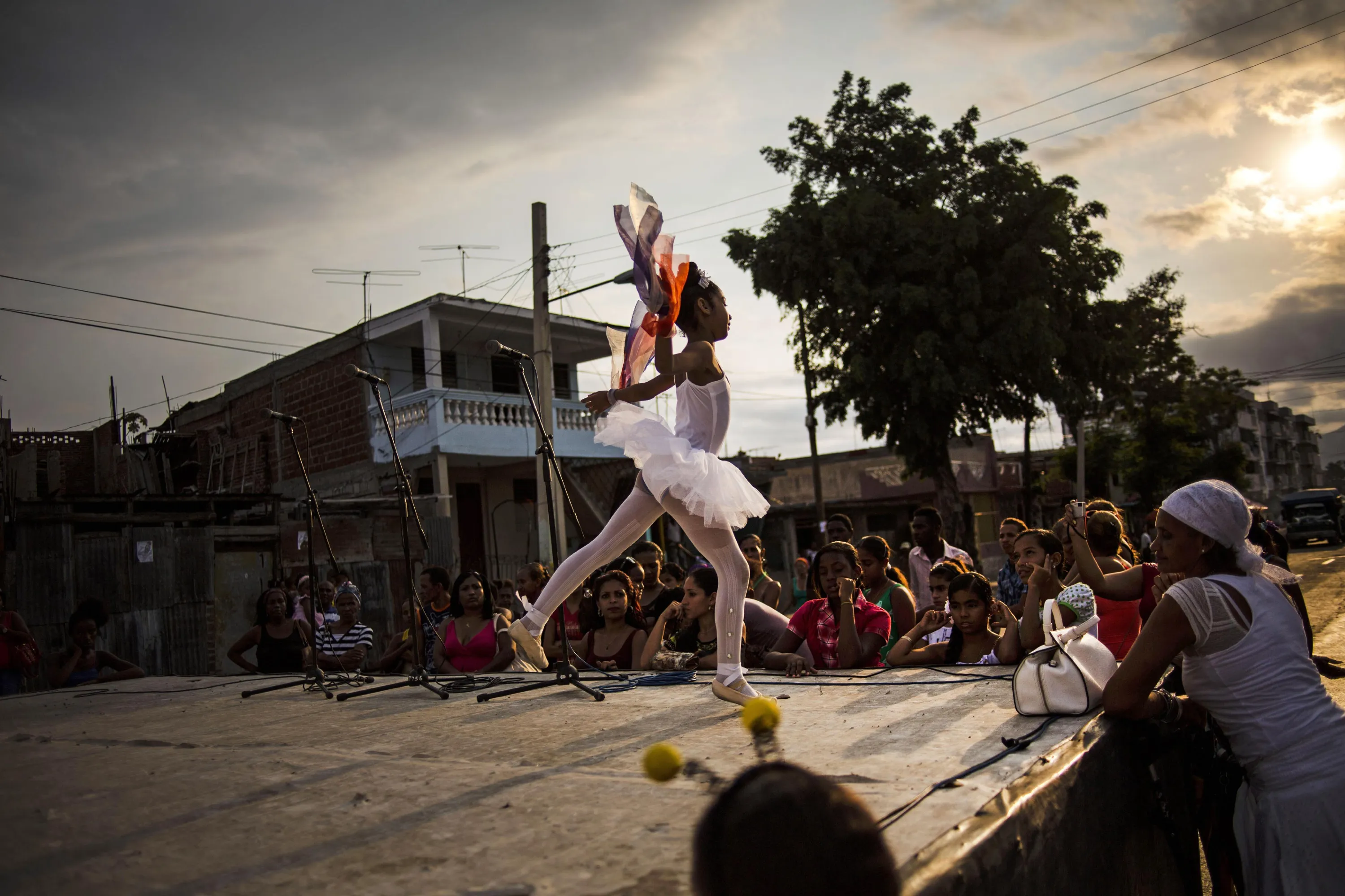 In this March 21, 2015 photo, a ballerina performs at a youth fair in her neighborhood in Santiago, Cuba. The contrast between hope and desperation is starker in eastern Cuba, which is a poorer area, isolated from the capital where detente with the United States has unleashed giddy waves of optimism. (Photo by Ramon Espinosa/AP Photo)