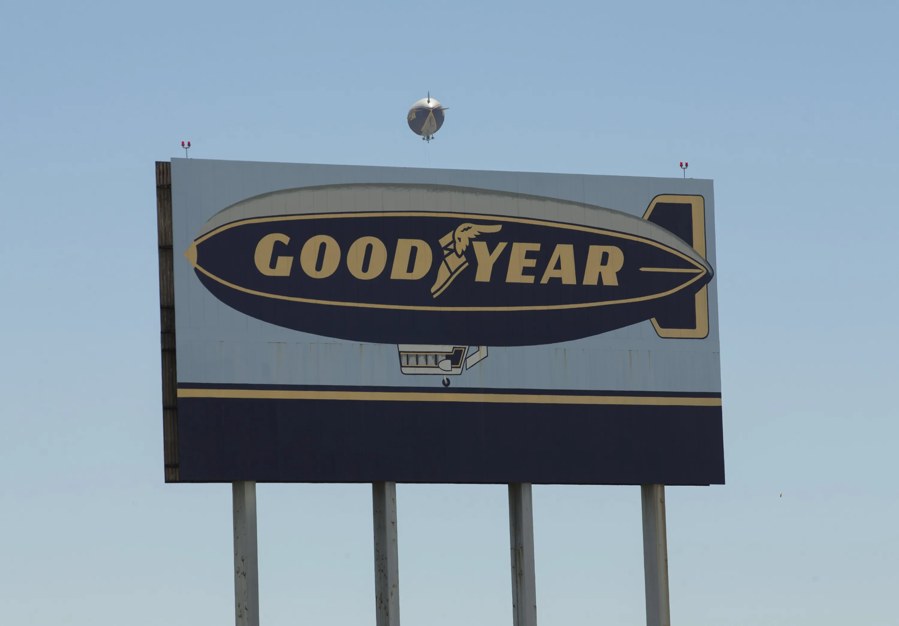 The Goodyear blimp “Spirit of America” floats past a highway billboard sign in Carson, California August 5, 2015. (Photo by Mike Blake/Reuters)