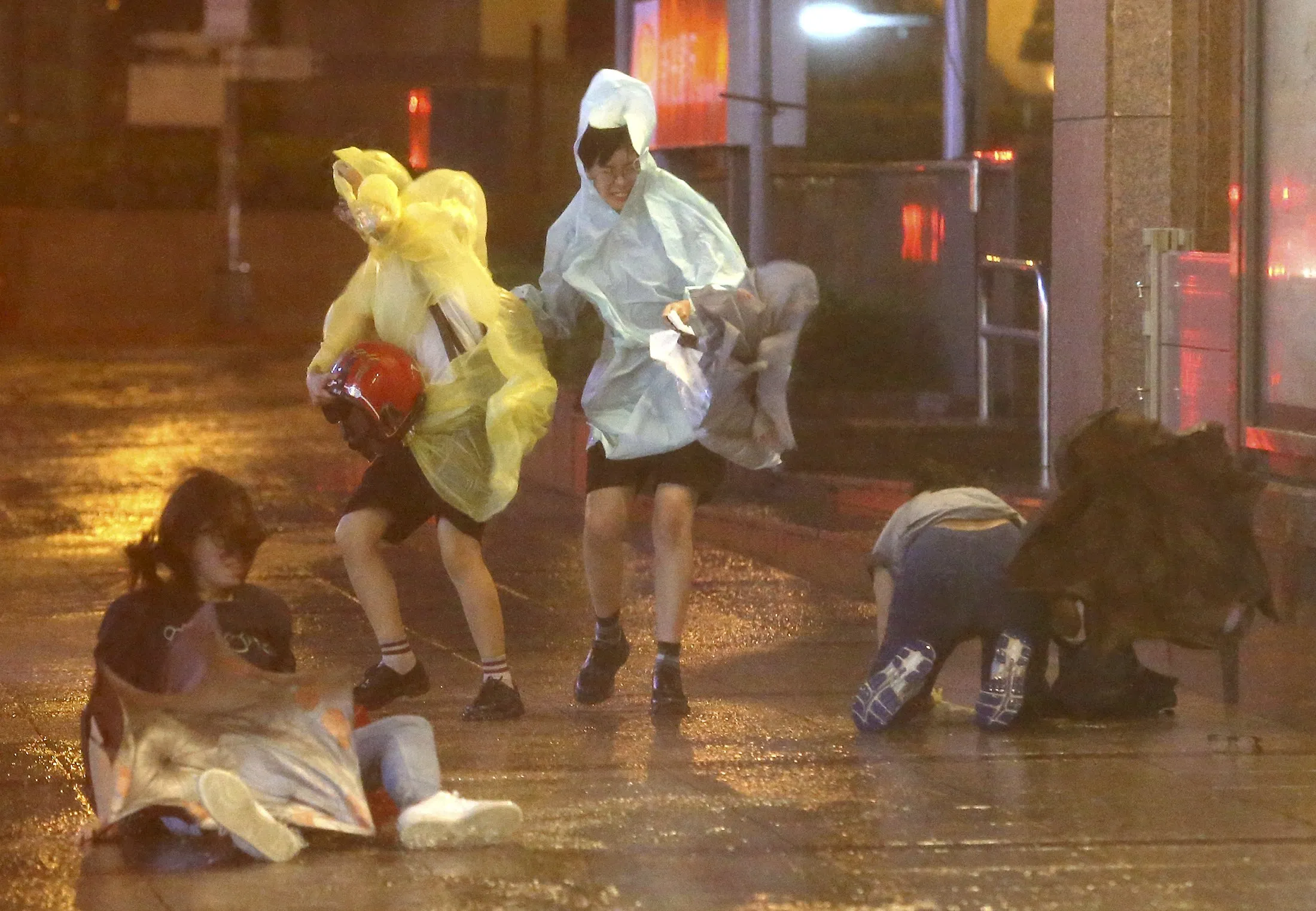 People walk against strong winds as Typhoon Soudelor approaches Taiwan in Taipei, August 7, 2015. (Photo by Edward Lau/Reuters)