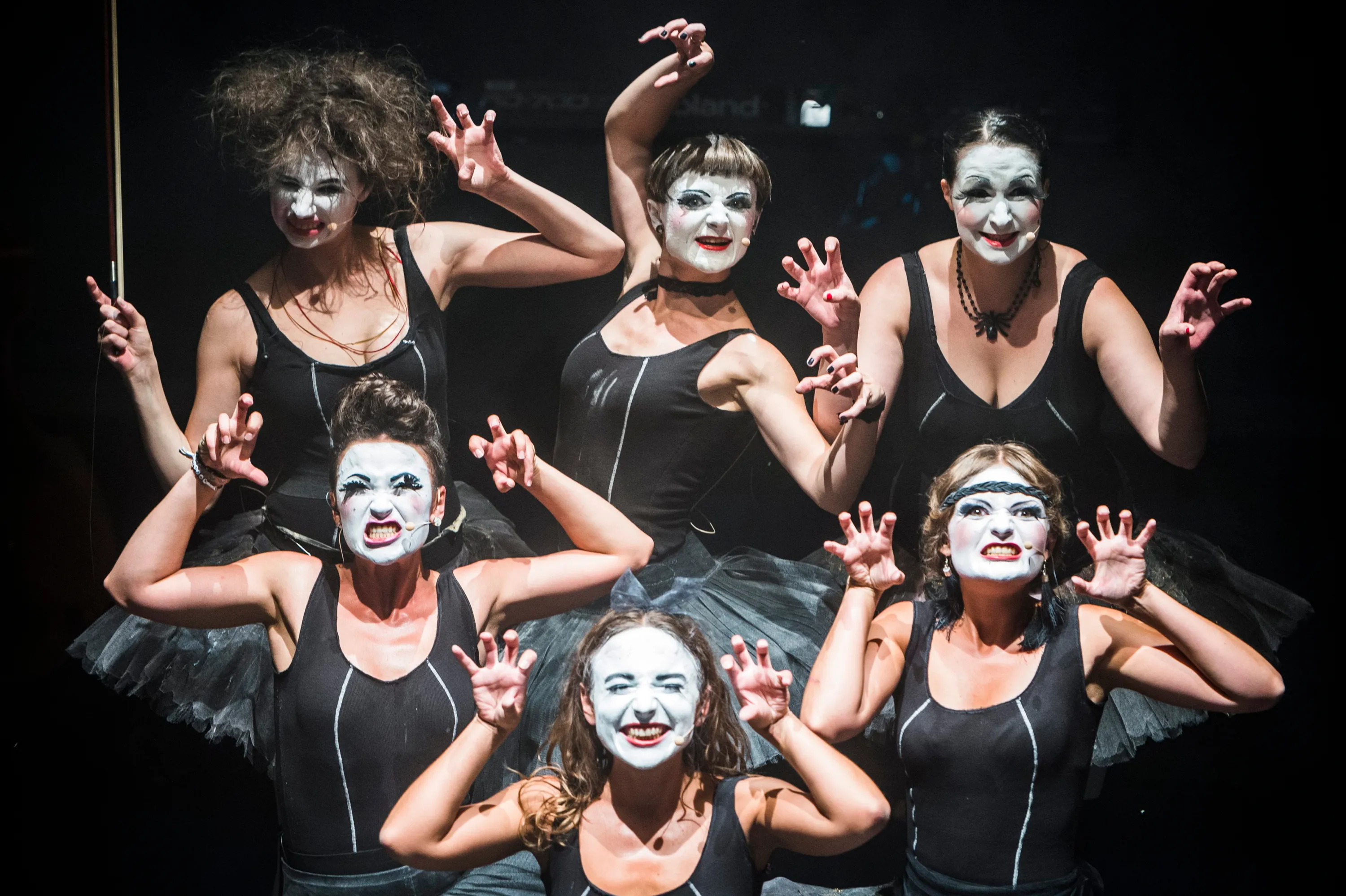 A photo made available 07 August 2015 of members of the Ukrainian group “Dakh Daughters Band” striking poses during their performance at the “Seebuehne” (lit: Lakeside stage) within the “Zuercher Theater Spektakel” (Zurich Theatre Spectacle) at the “Landiwiese” venue in Zurich, Switzerland, late 06 August 2015. (Photo by Dominic Steinmann/EPA)