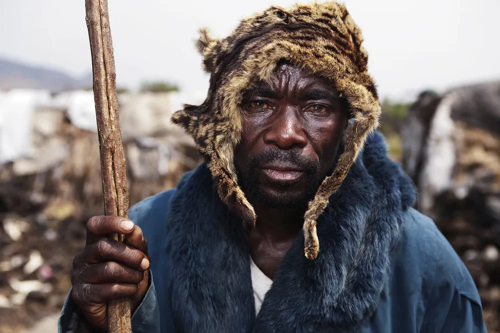 Nzamburba, 57, who is a member of a pygmy community, wears the skin of a wild cat on his head at Mugunga, just west of the eastern Congolese city of Goma, August 24, 2010. (Photo by Finbarr O'Reilly/Reuters)