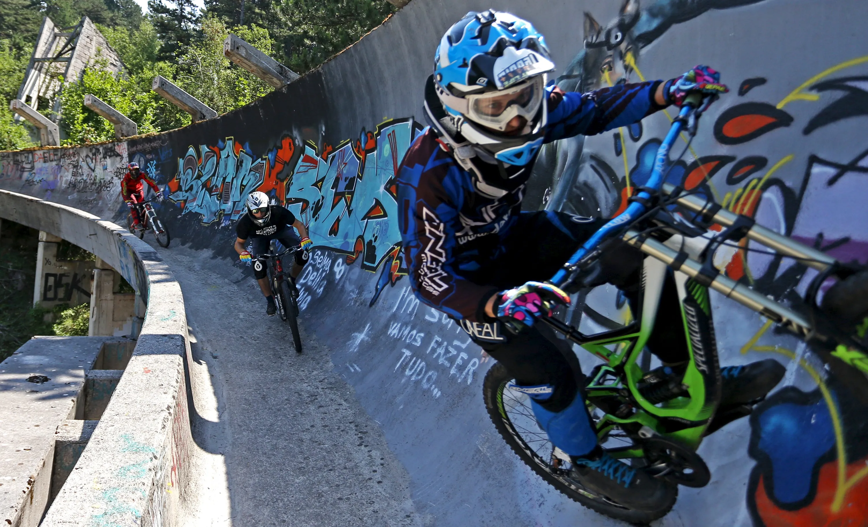 Downhill Bikers on the Disused Olympic Bobsled Track
