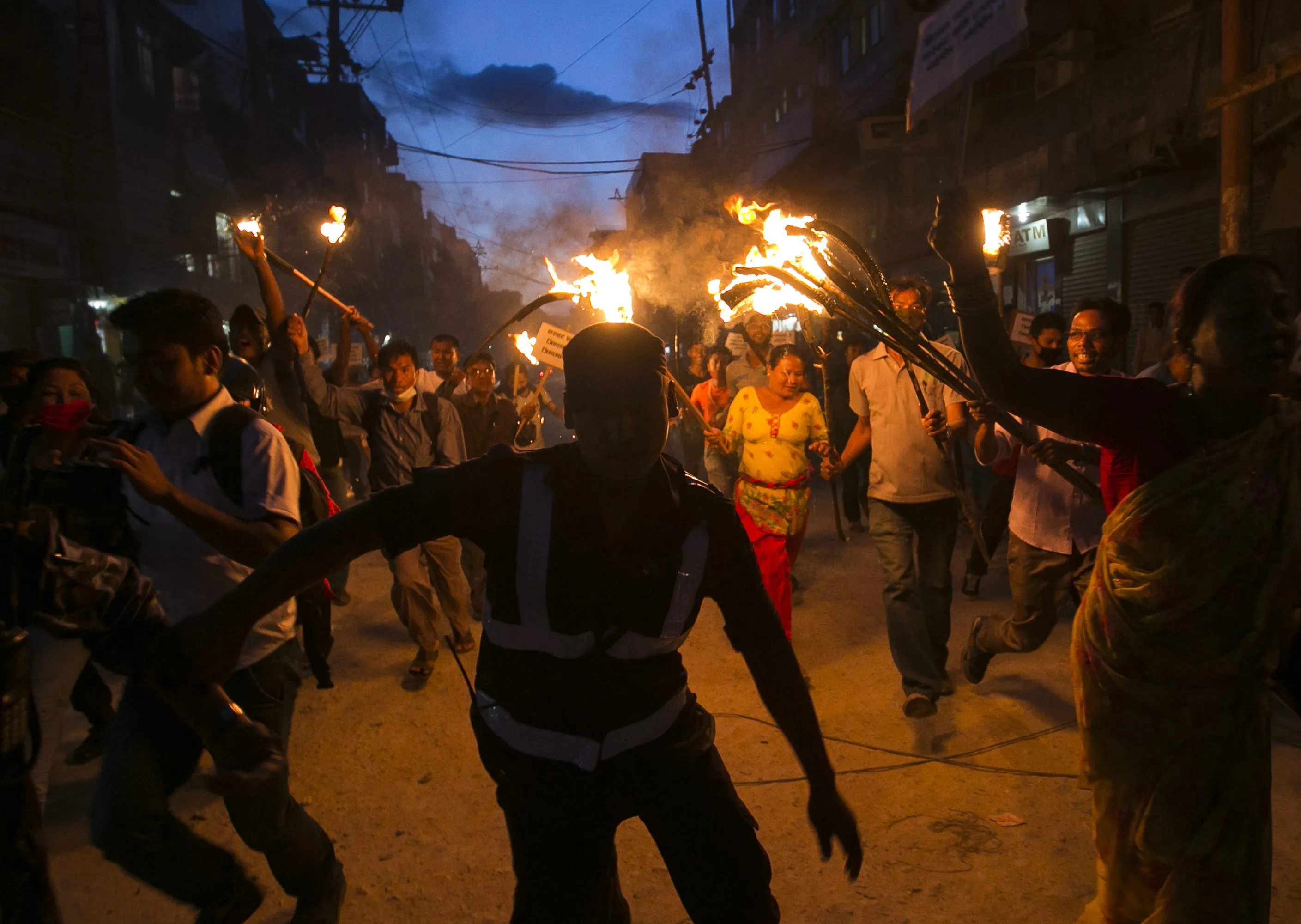 Nepalese protesters stage a torch rally in Kathmandu, Nepal, 11 August 2015. Hundreds of activists from the Nepal Tharu community staged a torch protest against the final draft of the Nepalese constitution. (Photo by Narendra Shrestha/EPA)