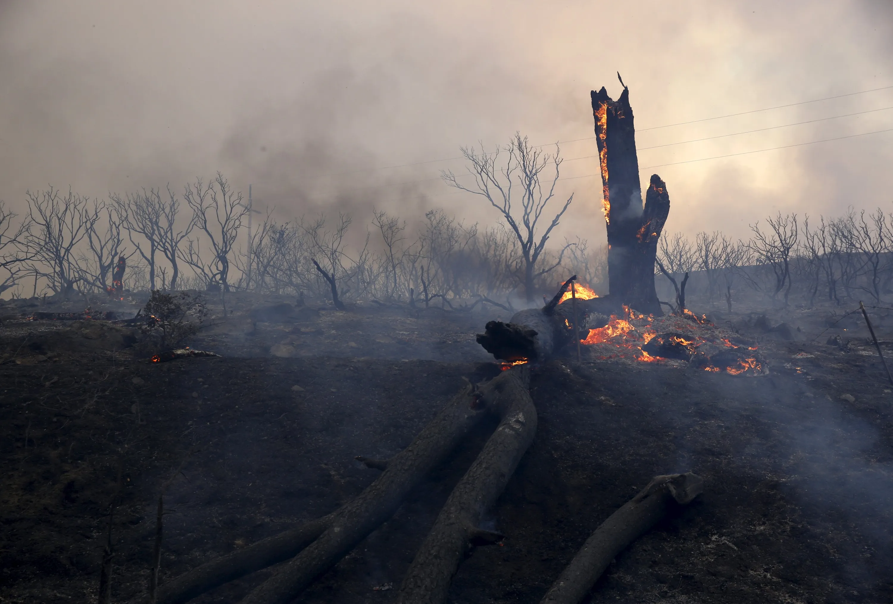 A tree burns along Morgan Valley Road during the so-called Jerusalem Fire in Lake County, California, August 12, 2015. (Photo by Robert Galbraith/Reuters)