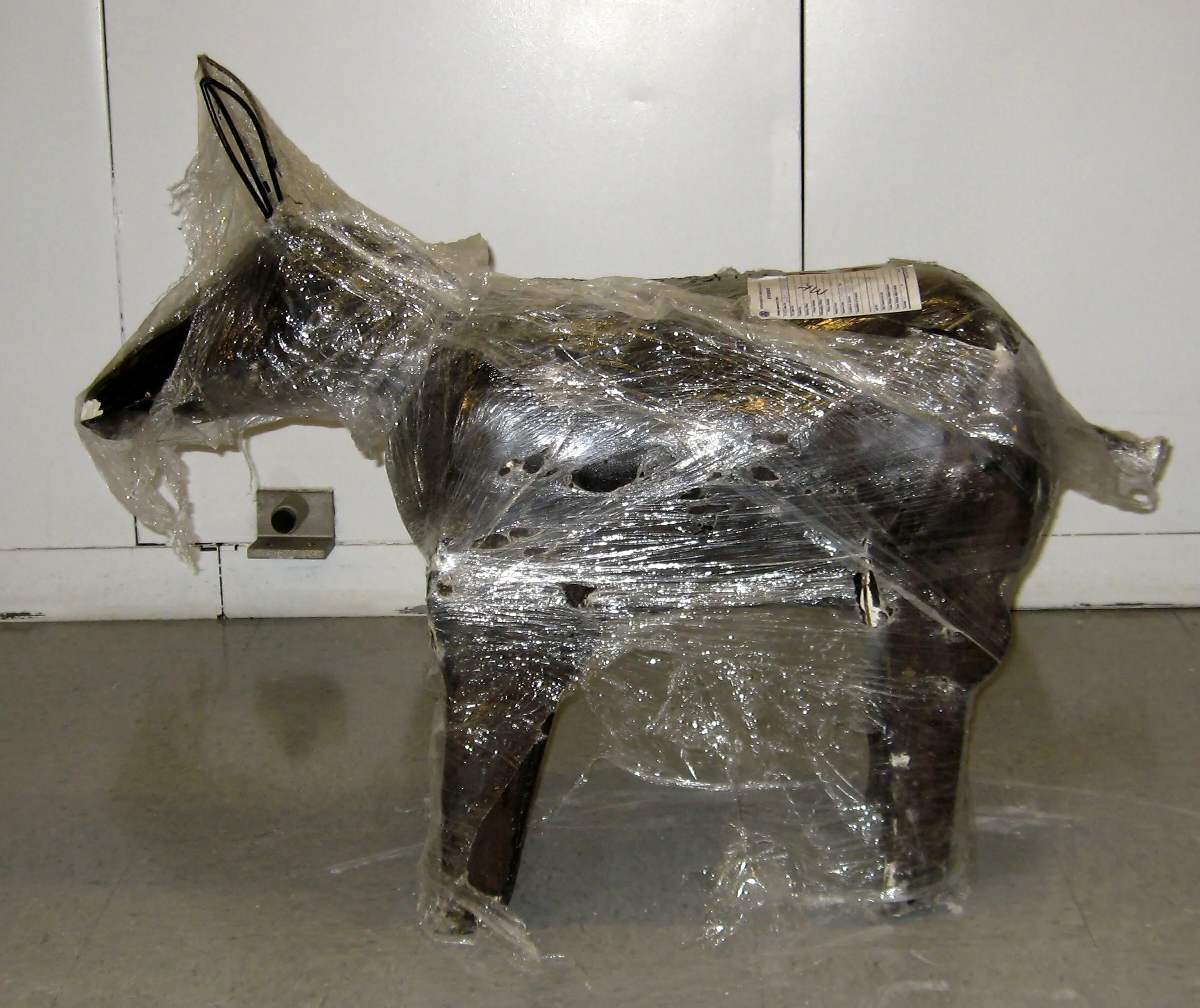 One of 200 cement yard statues shaped like a donkey is shown on display in this handout image provided by the U.S. Immigration and Customs Enforcement agency and released to Reuters February 4, 2009. Law enforcement agents seized 1800 pounds of marijuana valued at $1.5 million that had been hidden in the 200 statues in the cities of Fontana, California and Sun Valley, California. (Photo by Reuters/U.S. Immigration and Customs Enforcement)