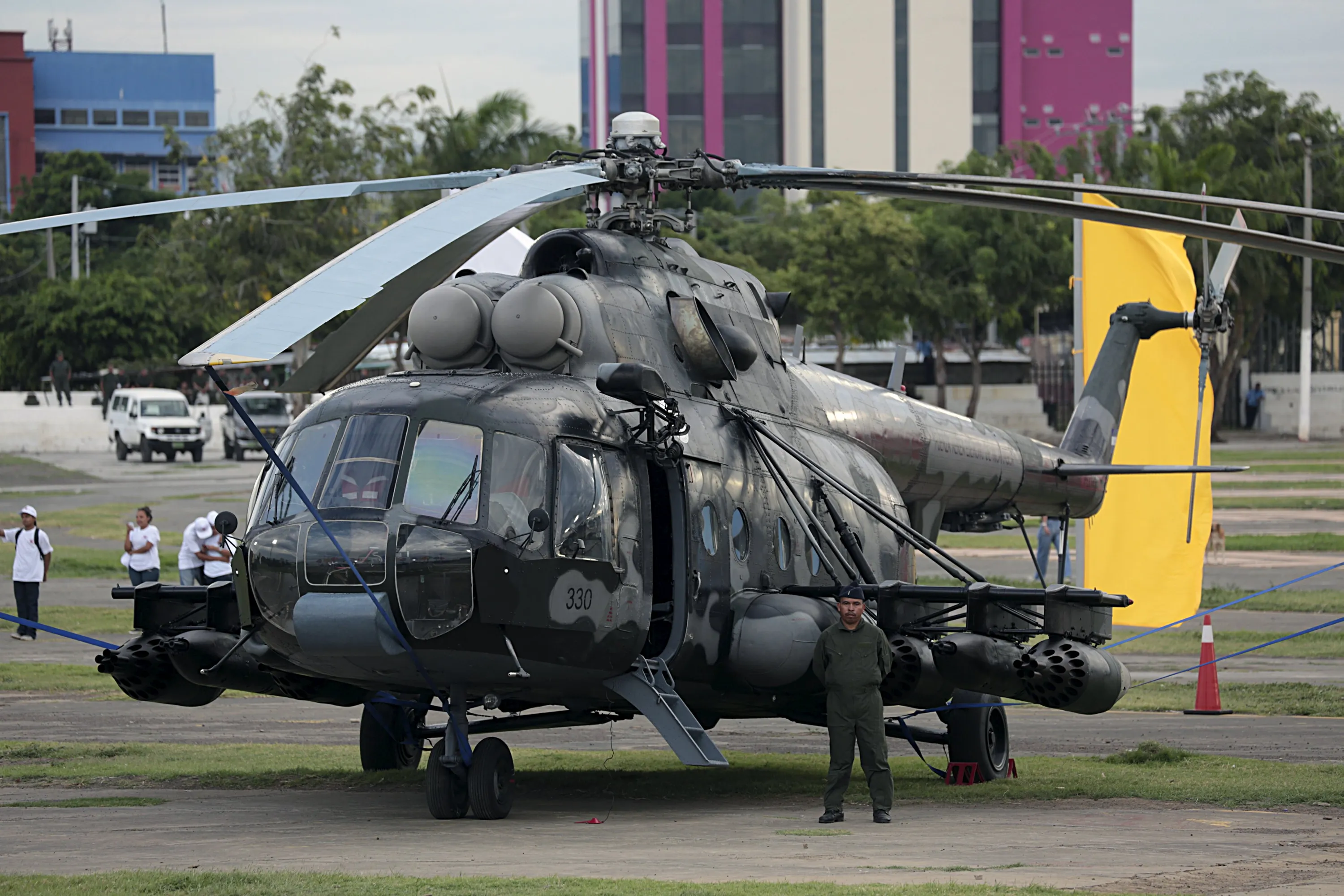 A member of the Nicaraguan Air Force stands next to a Russian-made helicopter during celebrations marking the 36th anniversary of the establishment of the Nicaraguan Air Force, at the Juan Pablo II square in Managua, Nicaragua August 12, 2015. (Photo by Oswaldo Rivas/Reuters)