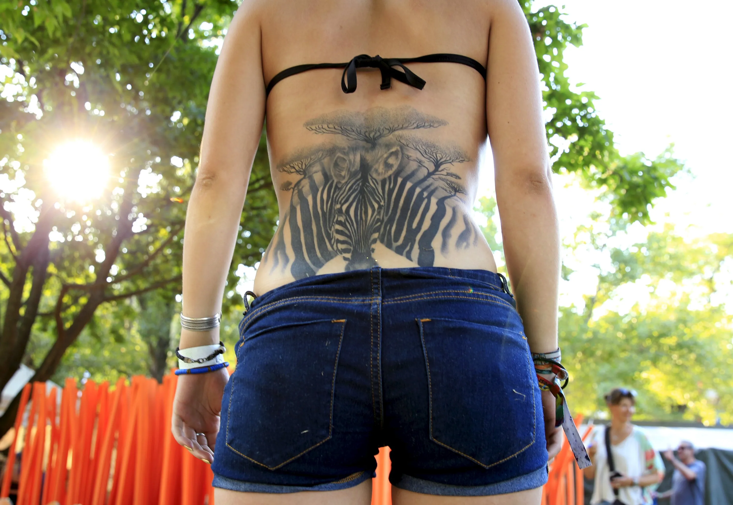 Lea Chartier, 20, from France shows her tattoo during the Sziget music festival on an island in the Danube River in Budapest, Hungary, August 14, 2015. (Photo by Bernadett Szabo/Reuters)