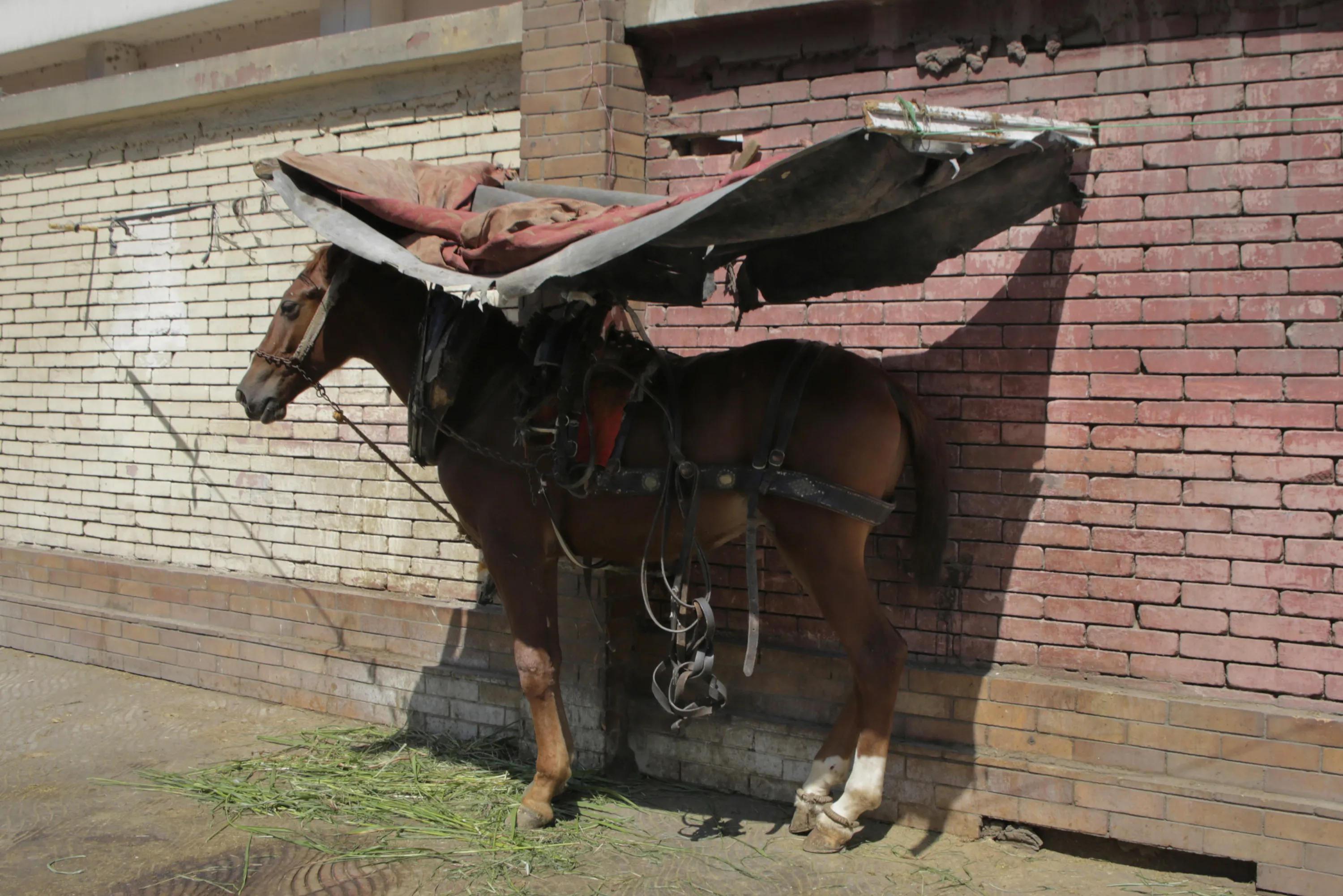 A horse stands under the shade of a makeshift roof made by its owner in Cairo, Egypt, Thursday, August 13, 2015. A blistering heat wave that has smothered large swaths of Egypt in recent weeks killed more than 60, its state news agency said Wednesday. (Photo by Amr Nabil/AP Photo)