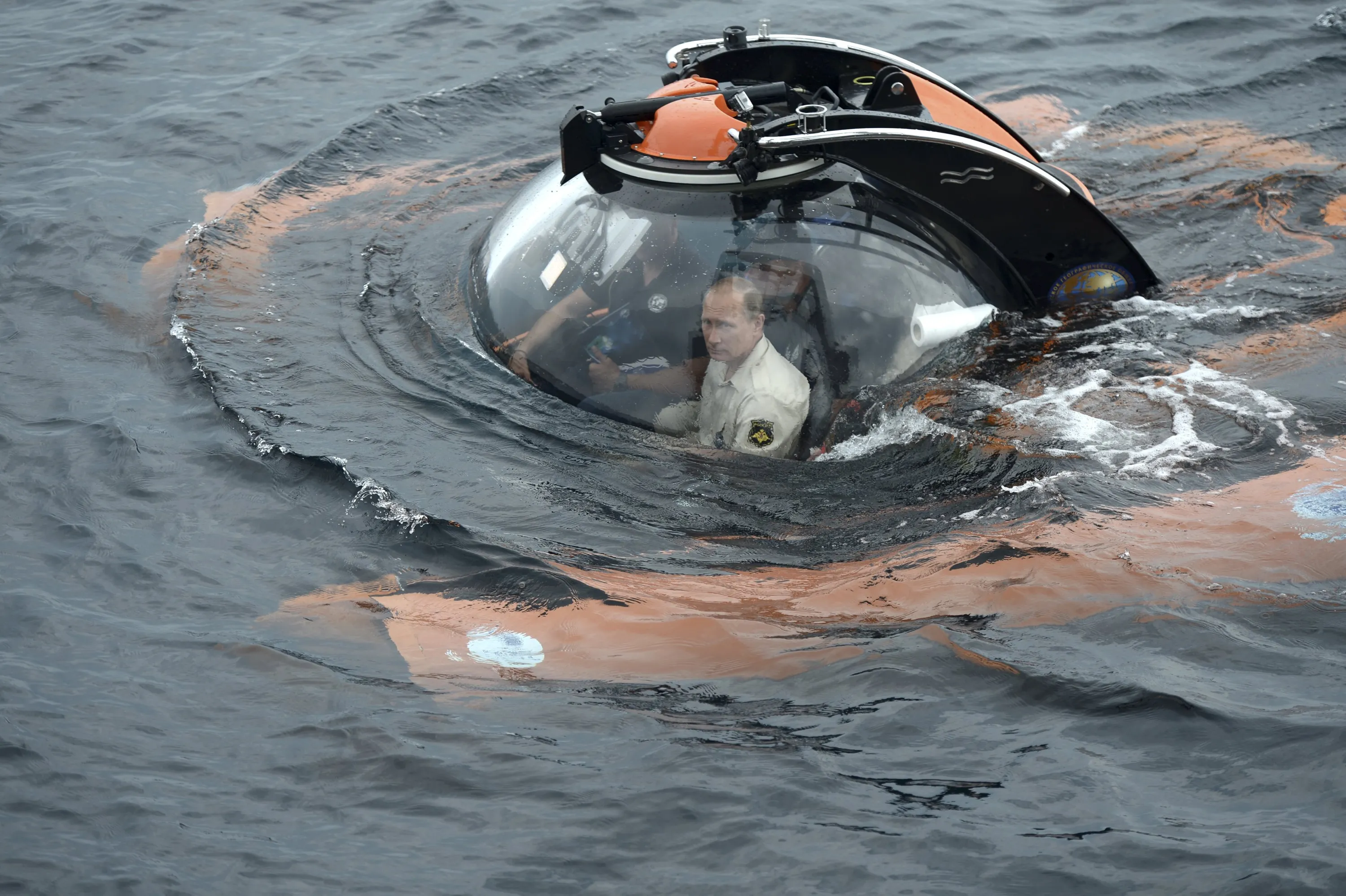 Russian President Vladimir Putin (front) is seen inside a research bathyscaphe while submerging into the waters of the Black Sea as he takes part in an expedition near Sevastopol, Crimea, August 18, 2015. (Photo by Alexei Nikolsky/Reuters/RIA Novosti/Kremlin)