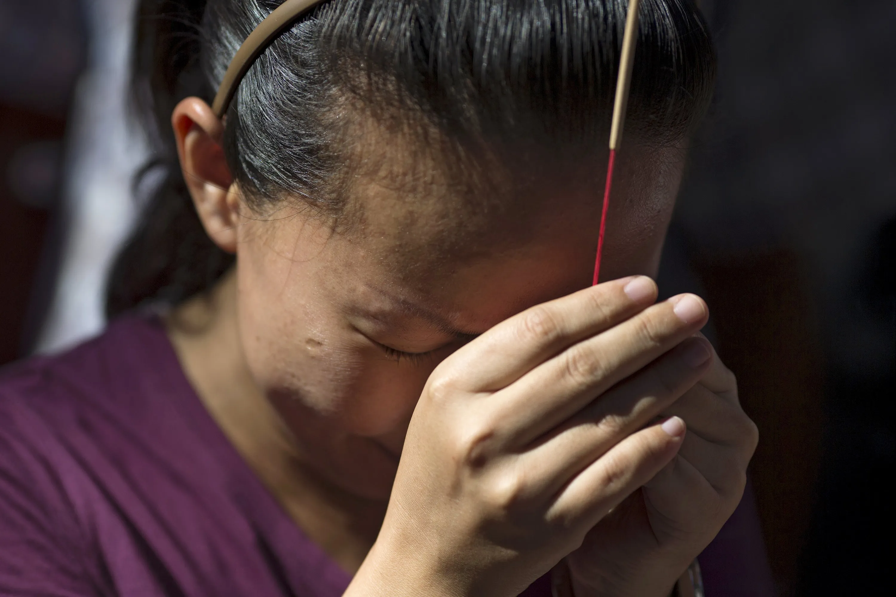 A family member of Malaysians victims pays her respect during a Buddhist ceremony at the Erawan shrine, the site of Monday's deadly blast, in central Bangkok, Thailand, August 19, 2015. (Photo by Athit Perawongmetha/Reuters)