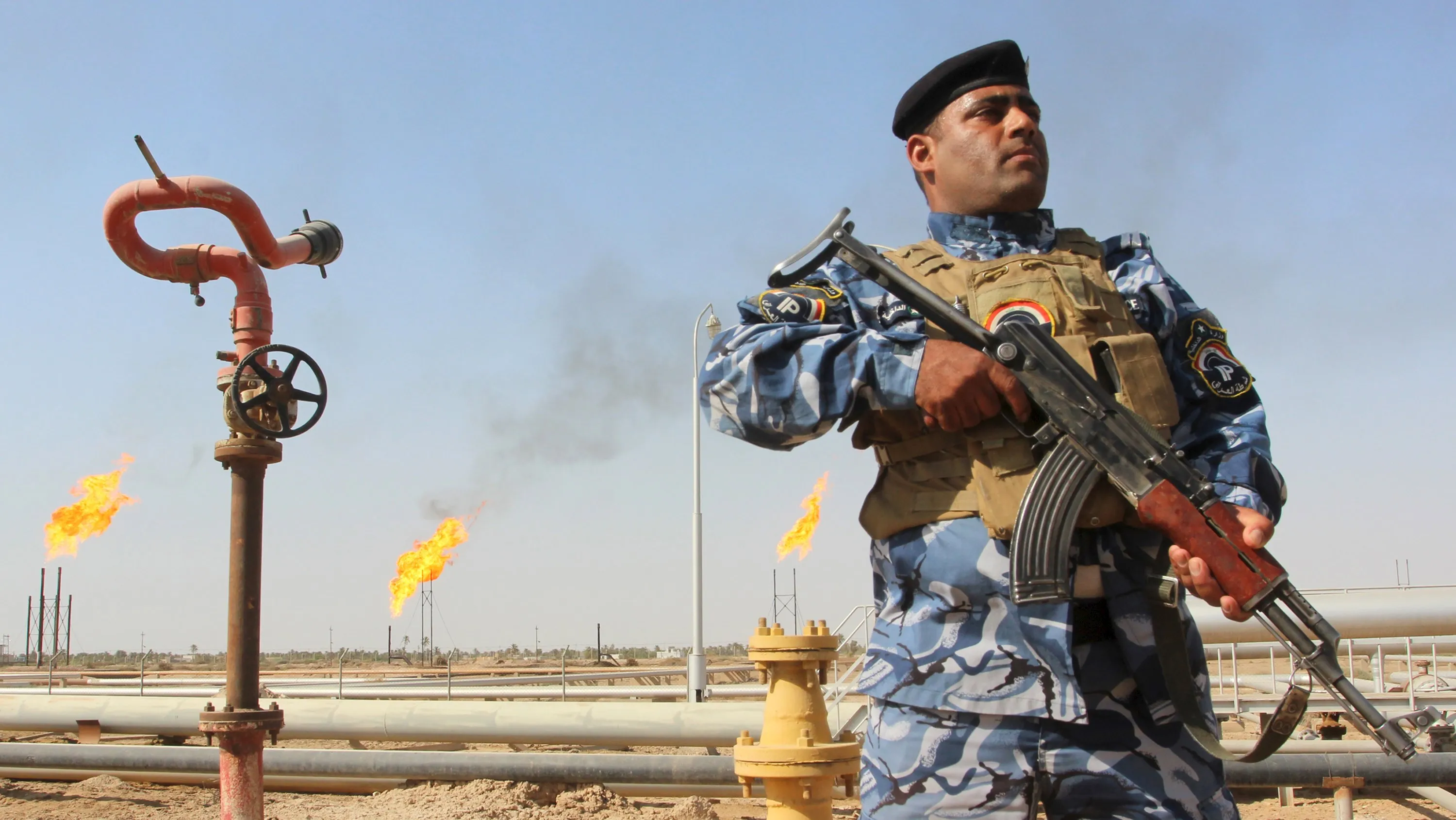 A member of the oil police force stands guard at Nahr Bin Umar oil field, north of Basra, southeast of Baghdad August 19, 2015. Iraq's oil exports have fallen by at least 250,000 barrels per day (bpd) so far in August according to loading data, making it less likely the several-month trend of rising OPEC output that has weakened oil prices will be sustained this month. (Photo by Essam Al-Sudani/Reuters)