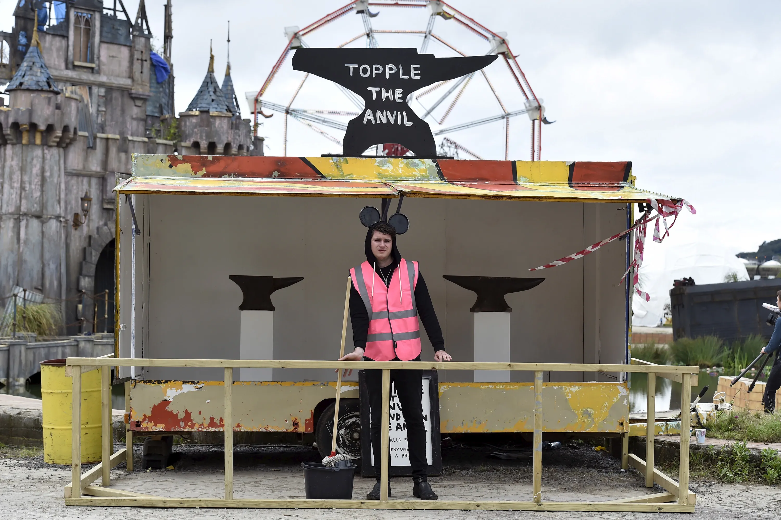 A performer stands at a booth in “Dismaland”, a theme park-styled art installation by British artist Banksy, at Weston-Super-Mare in southwest England, Britain, August 20, 2015. (Photo by Toby Melville/Reuters)