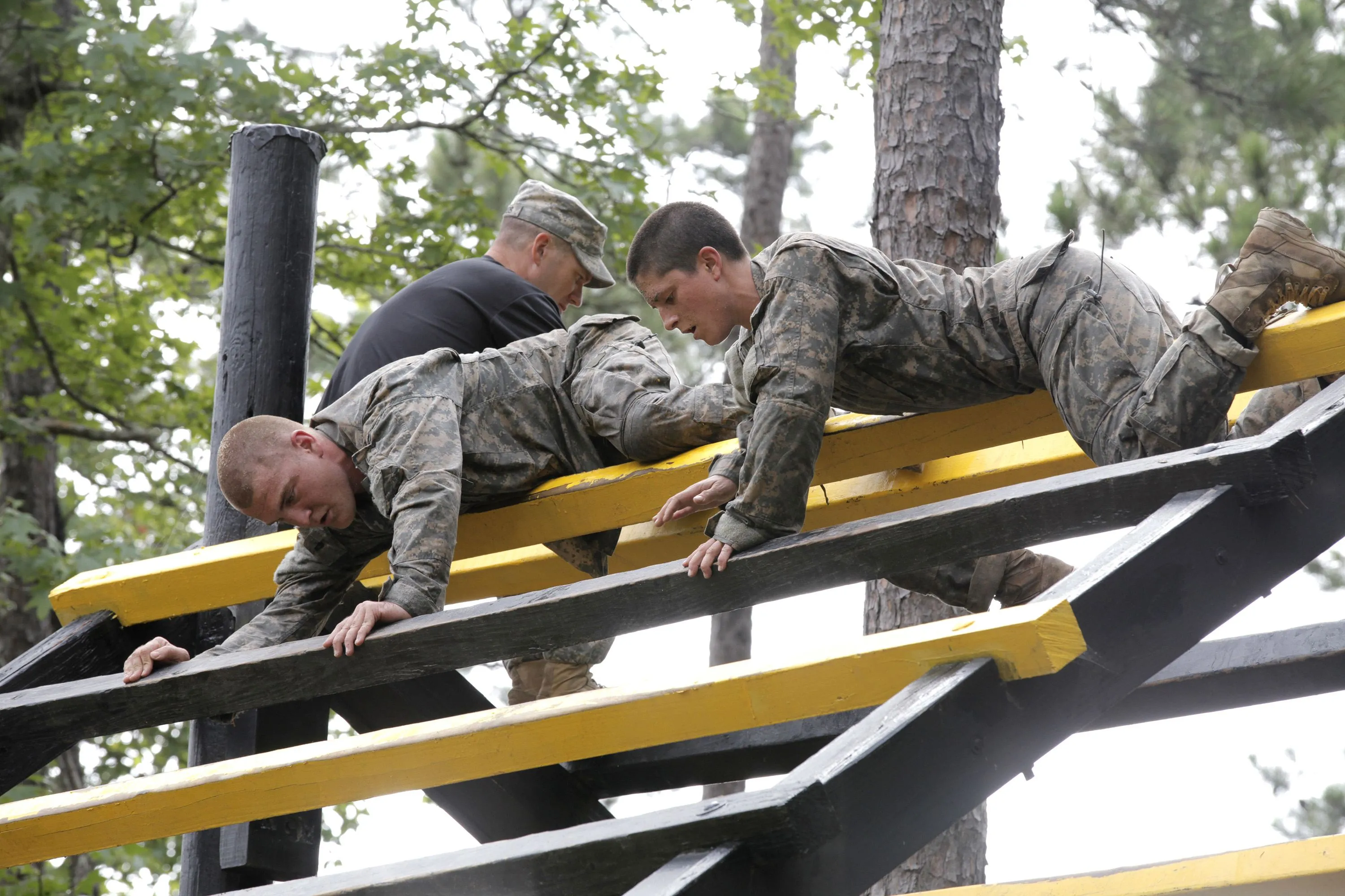 Captain Kristen Griest (R) participates in the Darby Queen obstacle course as part of the training at the Ranger Course on Ft. Benning Georgia, June 28, 2015. (Photo by Pfc. Ebony Banks/Reuters/U.S. Army)
