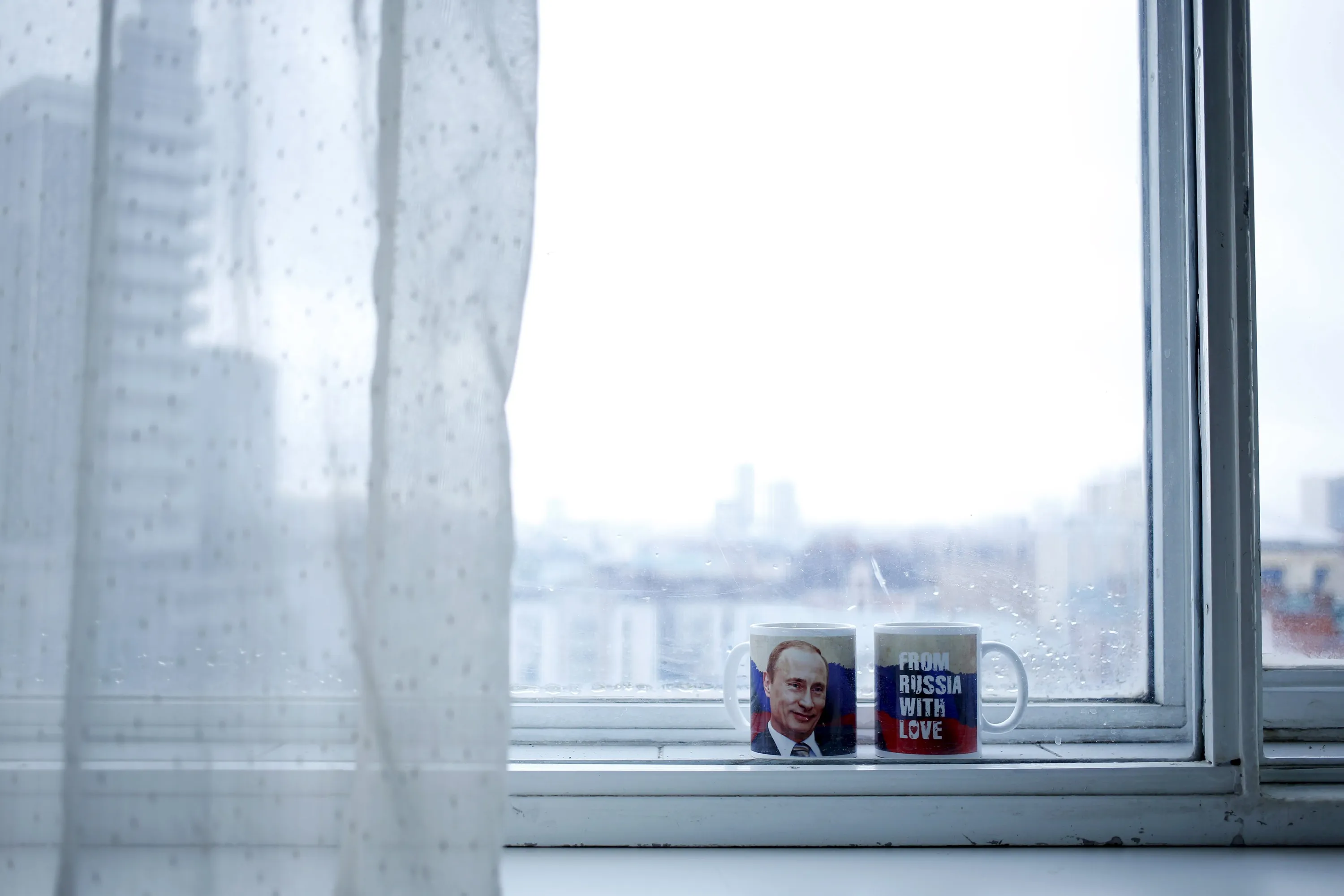 Mugs with a picture of Russian President Vladimir Putin are seen in this photo illustration taken in a hotel room in Kazan, Russia, July 31, 2015. (Photo by Stefan Wermuth/Reuters)