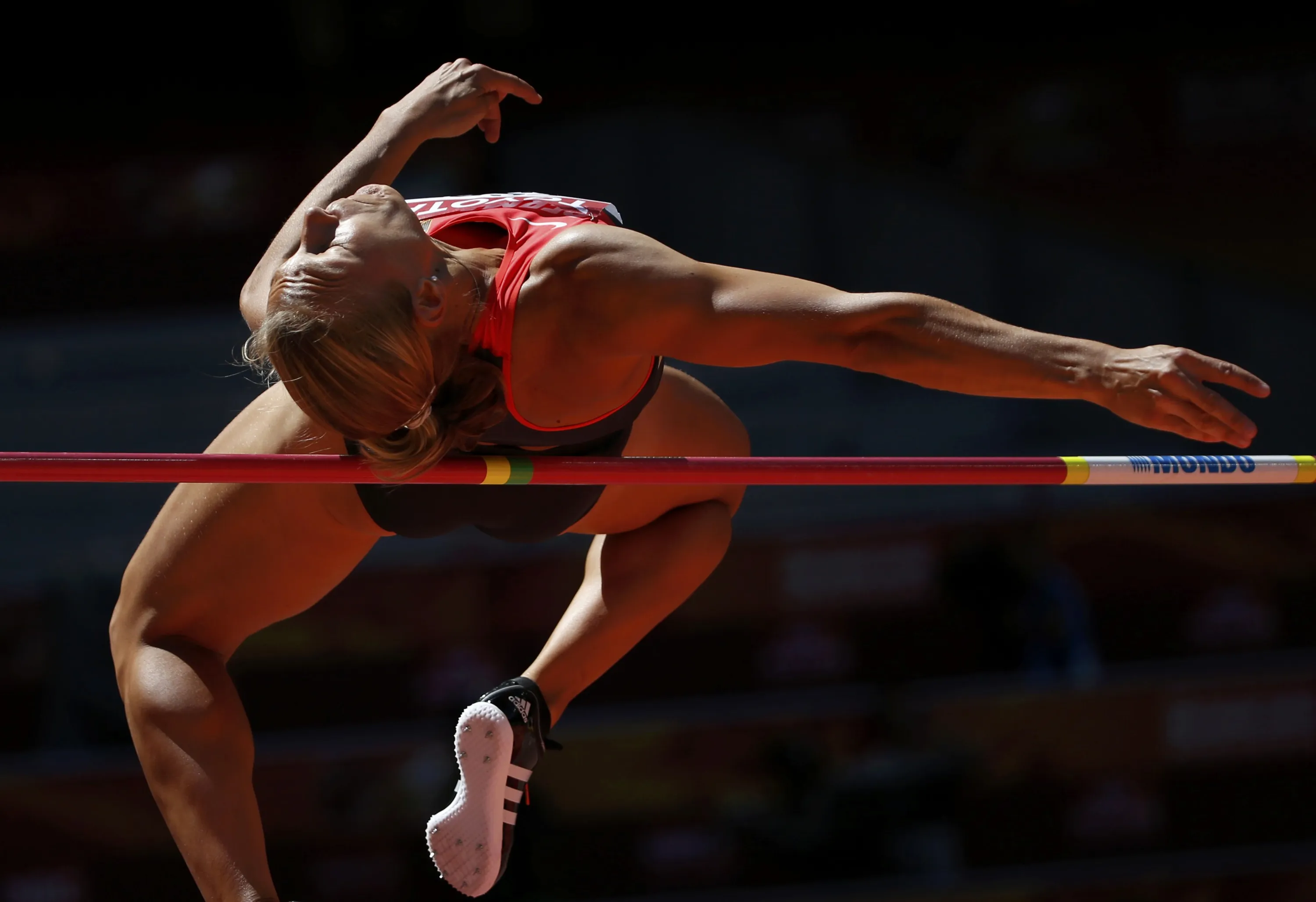 Jennifer Oeser of Germany competes in the high jump event of the women's heptathlon during the 15th IAAF World Championships at the National Stadium in Beijing, China, August 22, 2015. (Photo by Phil Noble/Reuters)